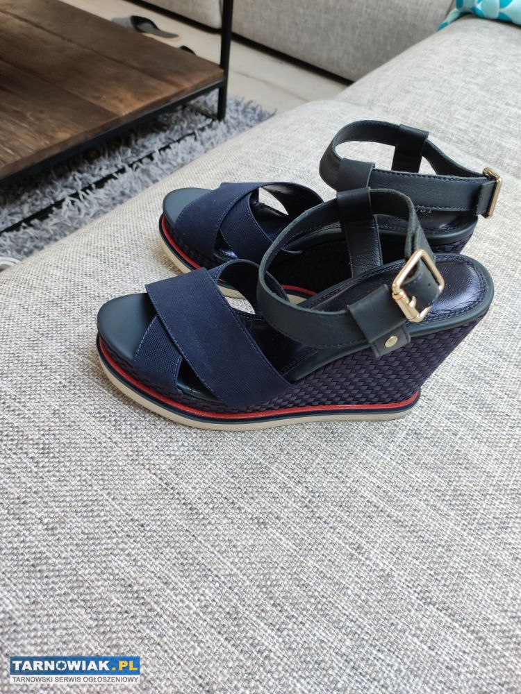 Mam do sprzedania granatowe buty na koturnie firmy Tommy Hilfiger rozmiar 39. Stan bardzo dobry.