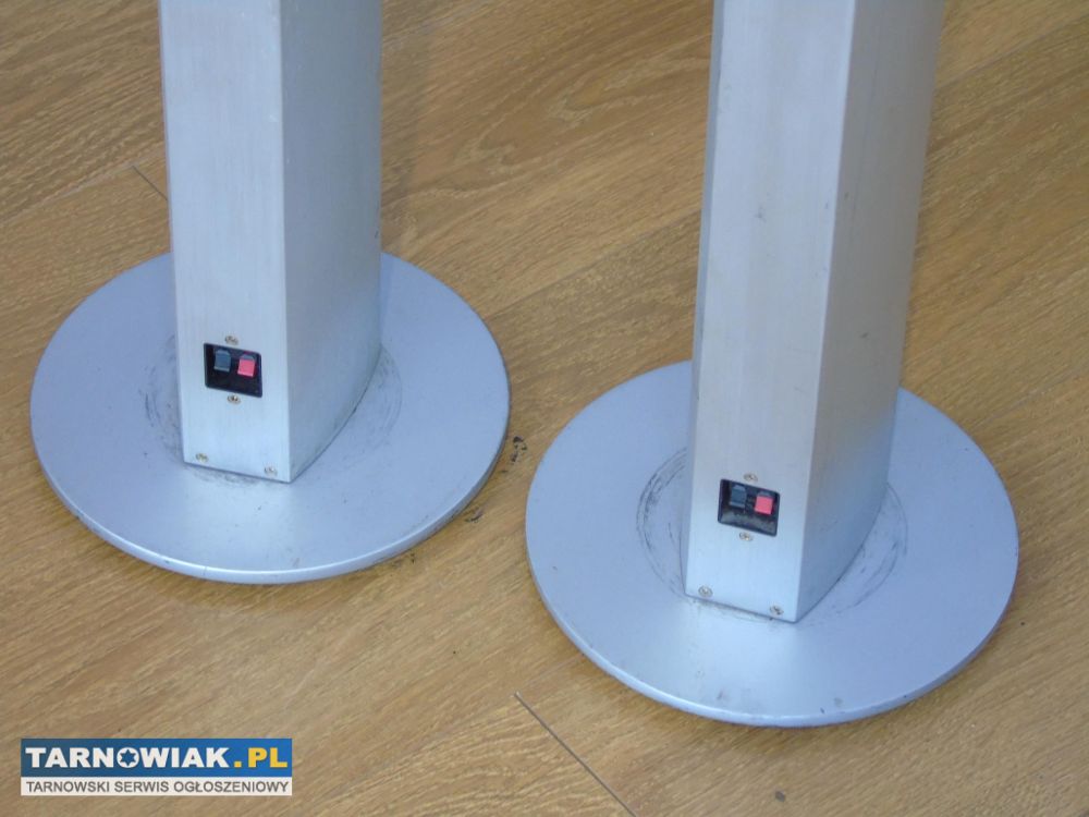 Kolumny sa ciężkie - całe metalowe , szczotkowane aluminium i ciężkie podstawy na gumowych stopkach.