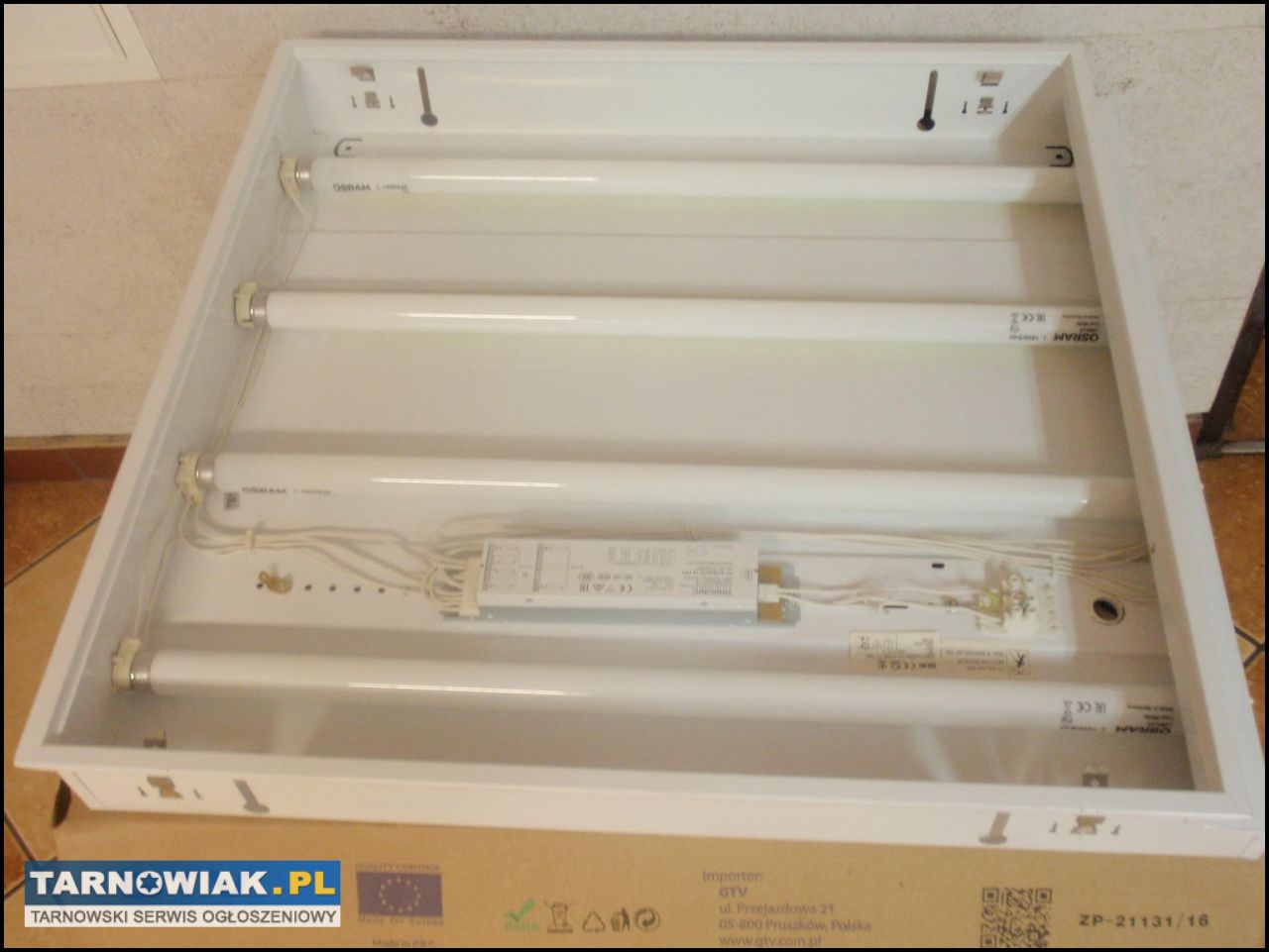 Oprawa rastrowa 60x60 cm wpuszczana w sufit. Nowa nieużywana sprzedaję komplet ze świetlówkami 4 x 18W.