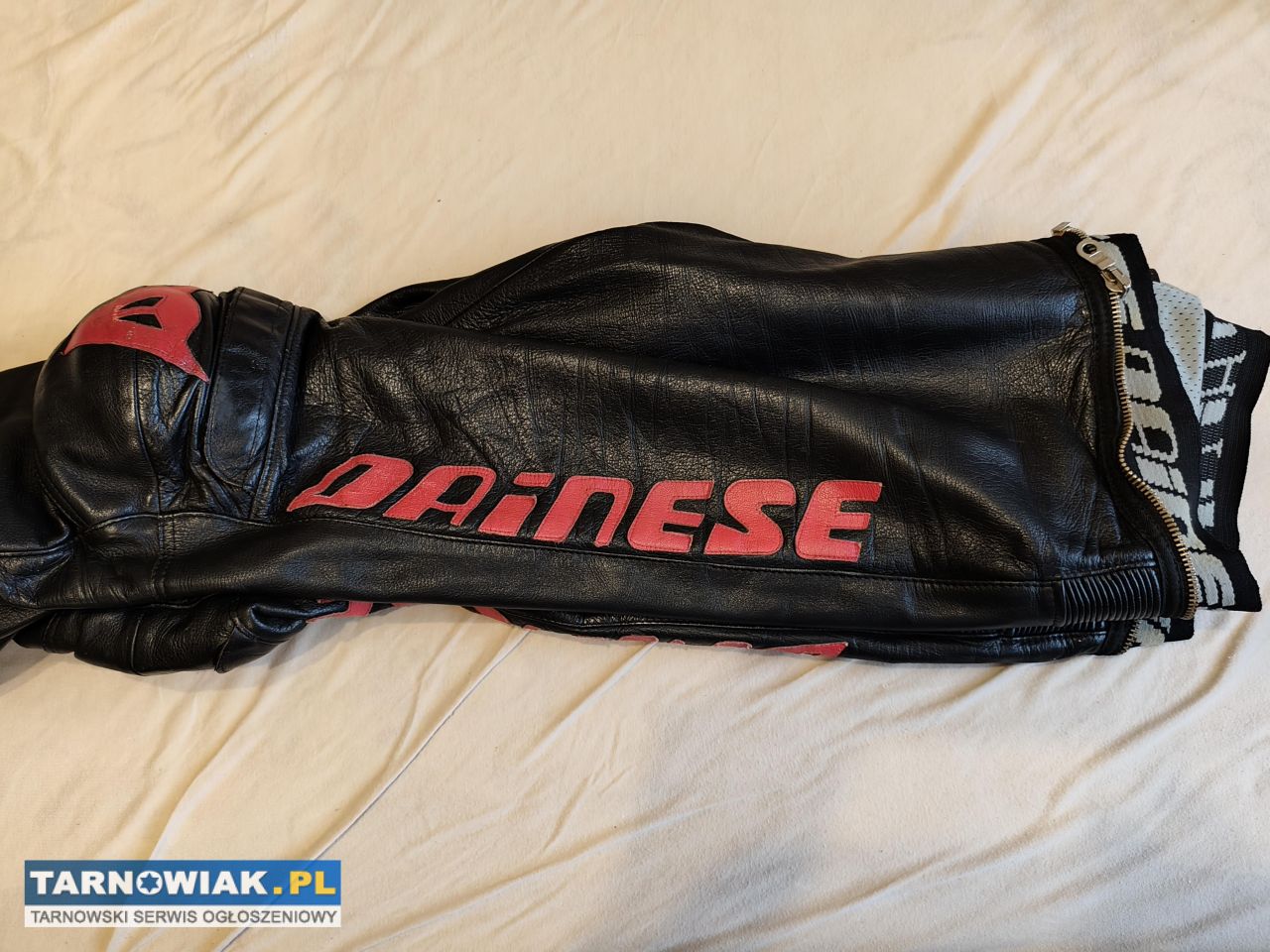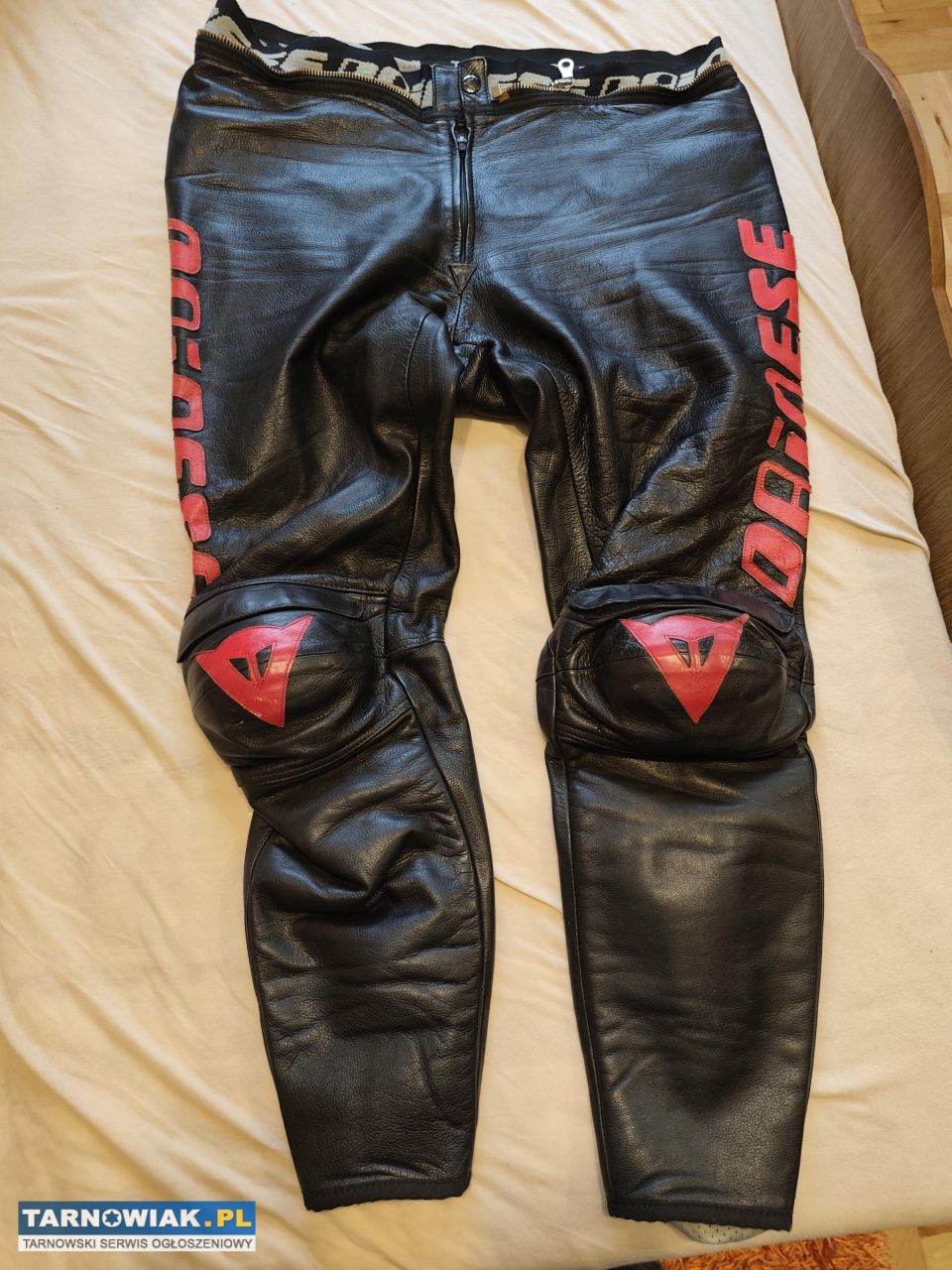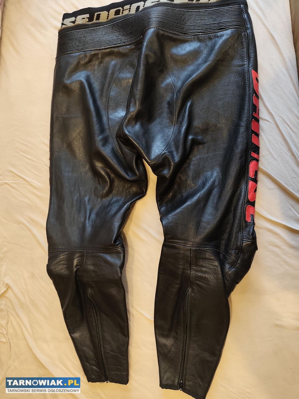 Sprzedam spodnie na motor ze skóry DAINESE , używane ale w ładnym stanie wizualnym, bez uszkodzeń czy przetarć, jedynie minimalne ślady od używania. Kolor czarny i czerwone napisy, zapinane z przodu na zamek i zatrzask. Rozmiar wg, metki 56 a przy pomiarze centymetrem ich długość od zamka pasa w dół to 98 cm, od zamka do kroku 35 cm, obwód w pasie to ok.104 cm, obwód w biodrach ok. 125cm, obwód w udzie ok. 60 cm. Guma w masie nie jest już taka elastyczna. Jest możliwość zobaczenia i zmierzenia w Tarnowie. Zapraszam do zapoznania się z moimi pozostałymi ofertami.
