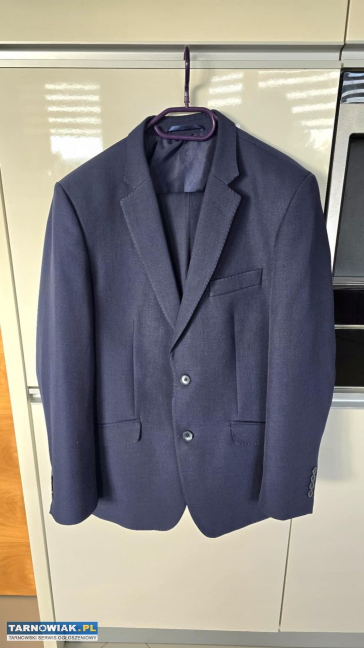 Sprzedam kompletny garnitur męski marynarka + spodnie. Kolor granatowy. Wzrost około 180cm. Stan bardzo dobry.
