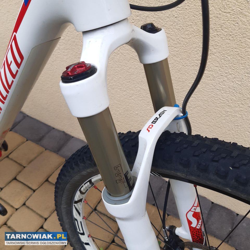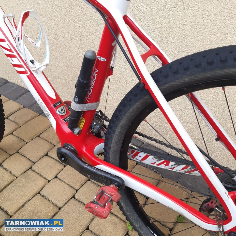 Kupiony jako nowy w salonie, koła 26", nie używany w wyścigach, błota raczej nie widział, zadbany, rozmiar 17,5". Masa ok. 10 kg. Klocki hamulcowe wymienione tylko raz w jednym kole, a opony są jeszcze od nowości, co świadczy o dość lekkich warunkach użytkowania.