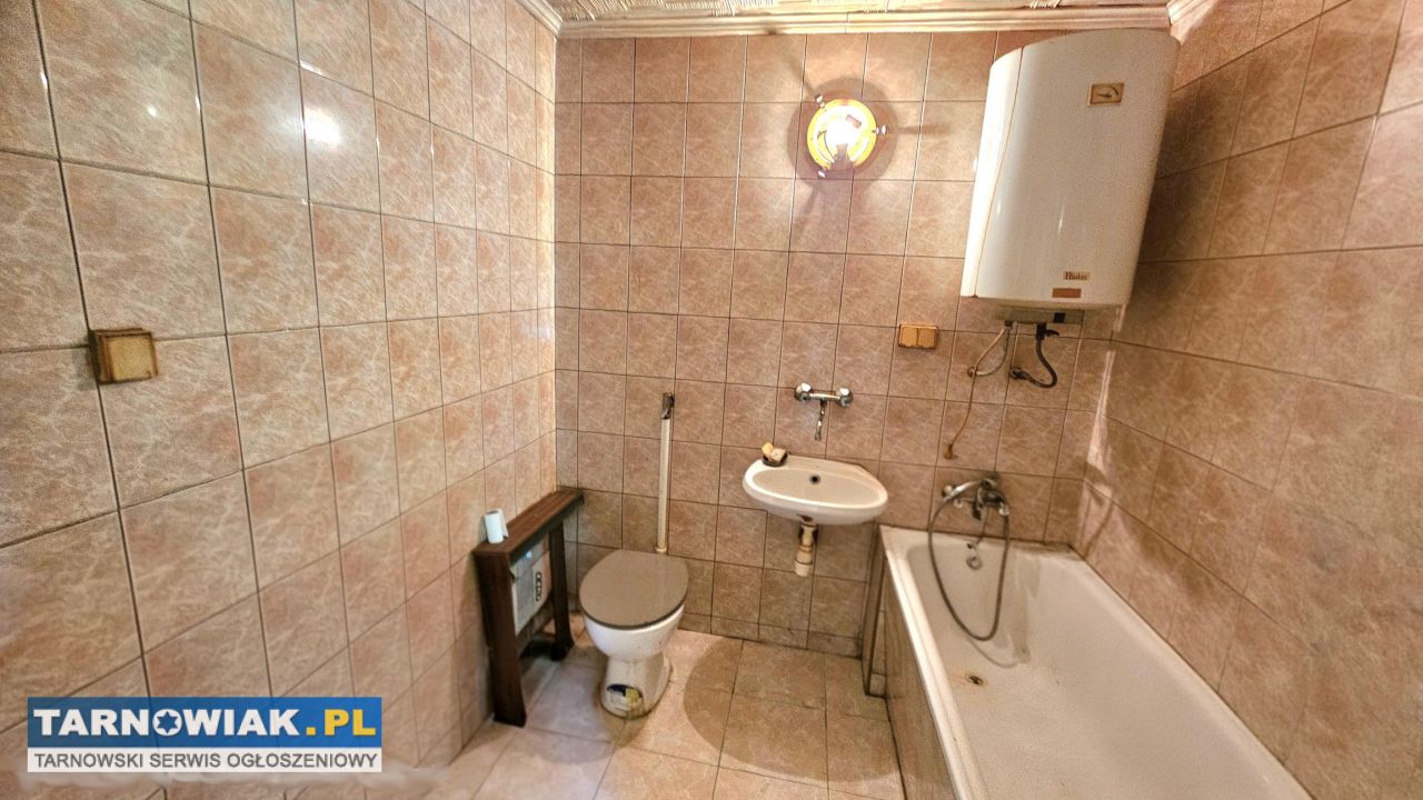 Szukasz małego mieszkania bądź domu w centrum miasta, do wejścia – odpuść sobie. Ta oferta spełnia tylko część Twoich oczekiwań. W cenie kawalerki masz wprawdzie dwupoziomowy dom, ale niestety wymaga nakładów. Do wymiany są m.in. instalacje oraz stolarka. Jeśli nadal jesteś zainteresowany, to zapewniam Cię o ogromnym potencjale tej nieruchomości. Solidna konstrukcja, ściany z pełnej cegły, ocieplona (parter) styropianem i zabezpieczona nowym dachem (nowa konstrukcja + poszycie - blachodachówka). Posiada wszystkie media: prąd 230/400 V, wodociąg, kanalizacja, internet światłowodowy, gaz na ścianie. Posiada bezpośredni dostęp do gminnej drogi. Częścią składową jest budynek gospodarczy spełniający rolę magazynu i warsztatu. Wszystko to na działce o pow. 135 m2 (istnieje możliwość powiększenia). Kolejnym i chyba największym atutem jest lokalizacja. Ścisłe centrum małego, malowniczego i prężnie rozwijającego się gminnego miasteczka, jakim jest Wojnicz. Komfort i wygoda. Komfort, bo miejsce zapewnia ciszę, a wygoda - bo w zasięgu 500 m od domu masz najważniejsze punkty użyteczności publicznej. Załatwisz wszystkie sprawy, od urzędowych, bankowych po zakupy, żłobek, przedszkole, szkołę, masz łatwy dostęp do służby zdrowia i komunikacji, a także punktów gastronomicznych. Pamiętaj, standard można zawsze poprawić, ale lokalizacji się nie da. Zapraszam do weryfikacji opisu i prezentacji nieruchomości na miejscu.