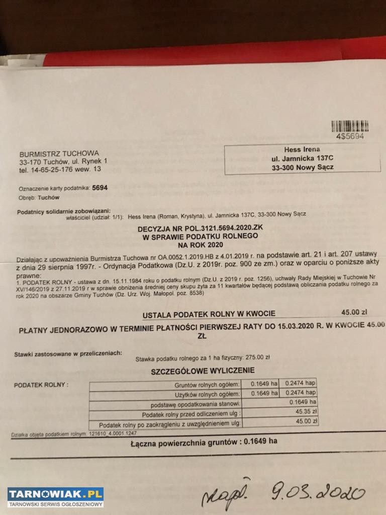 Sprzedam działkę - tuchów #2366885