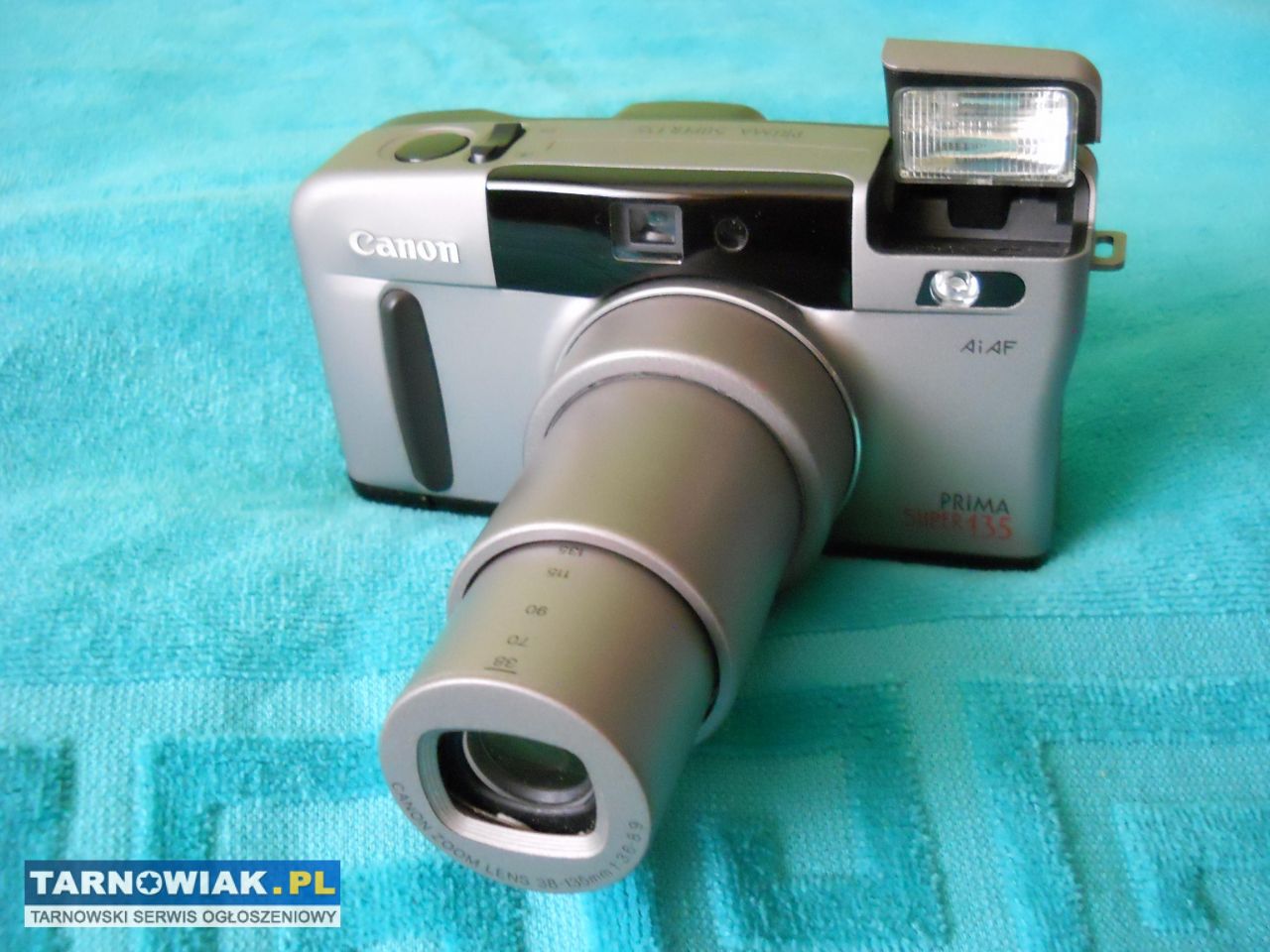 Aparat analogowy CANON PRIMA SUPER 38-135mm.srebrny, wszystko działa,na 2 baterie CR123A.