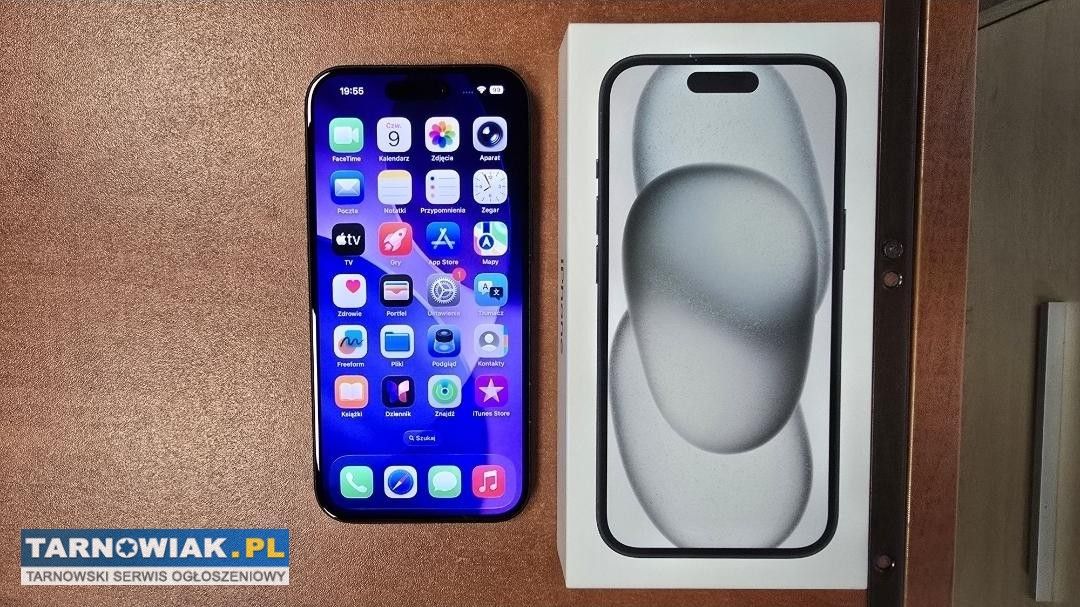 Sprzedam iPhone 15 128GB w kolorze Black. Telefon w bdb stanie, posiada normalne ślady użytkowania. W zestawie komplet widoczny na zdjęciu. Brak blokady simlock. Kondycja baterii 85%. Gwarancja serwisowa 1 miesiąc.