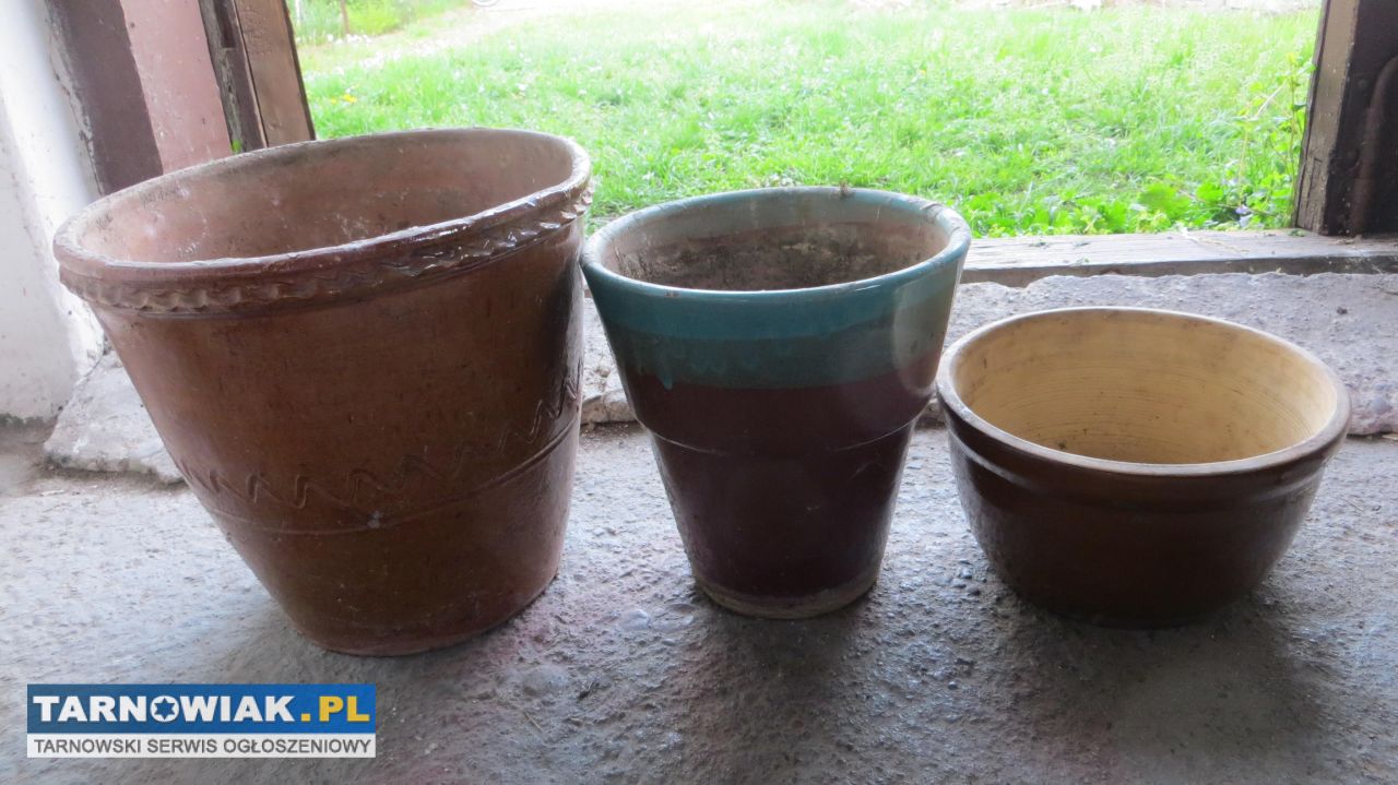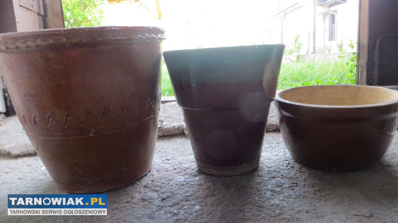 doniczki gliniane widoczne na zdjęciach 3szt cena za komplet 70zł więcej pod nr tel 518 356 805