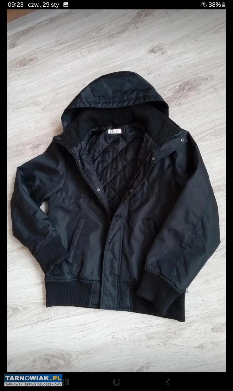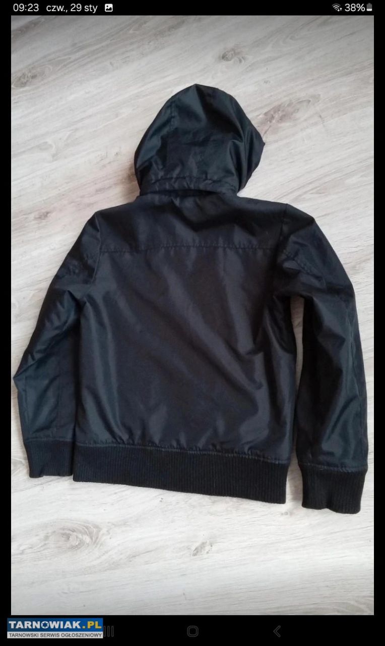 Czarna kurtka ze stójką zapinana na zamek i dodatkowo na zatrzaski z odpinaną kapuzą z dwoma kieszeniami po bokach I jedną na piersi zapinane na zamek zakończona szerokimi ściągaczem made in Szwedem firmy H&M rozmiar M/L długość 64cm,rękawa 72cm,szerokość pod pachami 2x53cm u dołu bez rozciągania 2x46cm za 36zl
