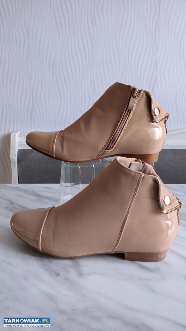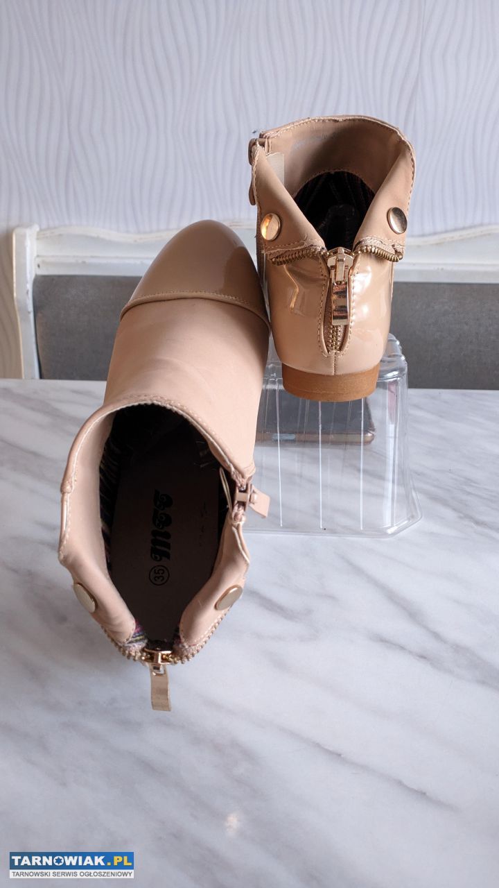 Mam do sprzedania nieużywane, jasnobeżowe trzewiki, rozmiar 35 marki MTT. Buty posiadają zamki boczne, co znacznie ułatwia ich zakładanie i ściąganie. Palce oraz napiętek lakierowane. Cena do uzgodnienia, zapraszam do kontaktu.