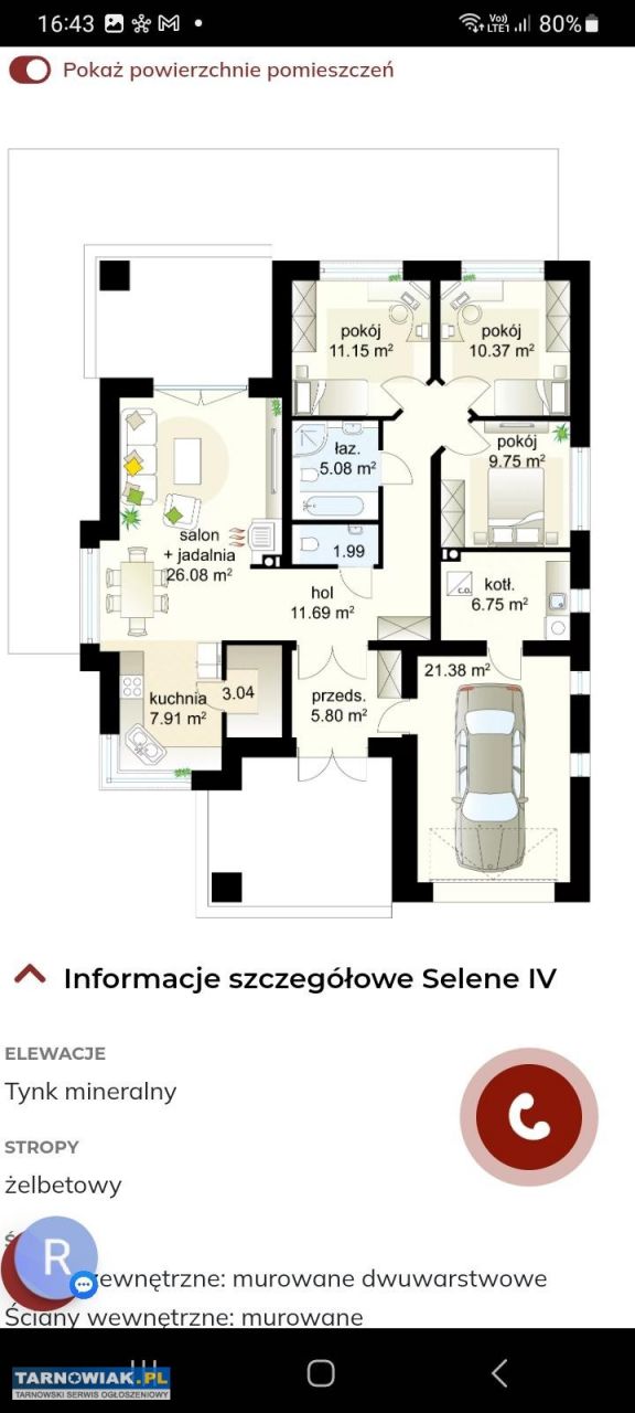 Powierzchnia domu około 121m2.Mozliwośc powiększenia o poddasze dalsze około 80m2.Powierzchnia działki 15arów .Dojazd drogą gminną asfaltową.Tylko 15 minut drogi do Tarnowa.Wykonane zostały fundamenty.Kolejne prace zostaną wykonane na wiosnę. Cena 370000zł za stan surowy.Możliwa Płatność w ratach.tel 577190218