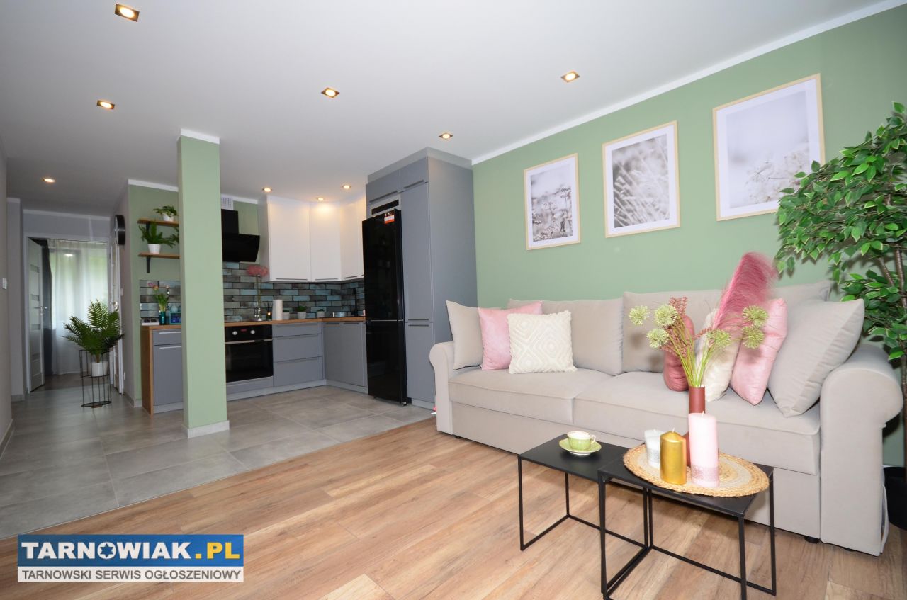 Proponujemy Państwu do wynajęcia nowoczesne, komfortowe mieszkanie po generalnym remoncie (3 lata). Mieszkanie znajduje się na parterze w czteropiętrowym bloku z cegły. Sam blok przeszedł termomodernizację. Powierzchnia 44.4 m2. Składa się z salonu wraz z otwartą kuchnią, przestronnej sypialni, wygodnej łazienki i dużego przedpokoju. Do lokalu przynależy również piwnica. By przyszły najemca mógł w pełni korzystać z jego funkcjonalności i cieszyć się użytkowaniem mieszkania, jego układ został zmodernizowany. Dzięki temu można z łatwością oddzielić strefę dzienną od strefy nocnej, bez obawy o hałas. Nowe okna PCV i drzwi wewnętrzne oraz wejściowe z systemem antywłamaniowym, zadbają o komfort, ciszę i bezpieczeństwo przyszłego najemcę. W całym mieszkaniu zostały wymienione wszystkie instalacje oraz zamontowano podwieszane sufity wraz z energooszczędnym oświetleniem LED. Ciepło zapewnią nowe kaloryfery. Kuchnia jest wyposażona w nowe meble wykonane na wymiar według indywidualnego projektu by w pełni wykorzystać potencjał przestrzeni. Zamontowane sprzęty AGD podlegają 2 letniej gwarancji. Lokal znajduje się w dogodnej lokalizacji, wszystko na wyciągnięcie ręki. W sąsiedztwie znajdziemy: przedszkole, szkołę, pocztę, aptekę i różnego rodzaju instytucje użyteczności publicznej a także przystanek komunikacji miejskiej. Osoby zainteresowane zapraszamy na prezentację.