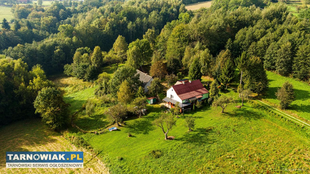 Całość usytuowana na niemal 5 ha ziemi – grunty orne, teren zalesiony oraz część rolno-budowlana. Media: prąd, gaz, linia telefoniczna, studnia, pełny zasięg sieci komórkowej. Dojazd utwardzoną drogą przez las.