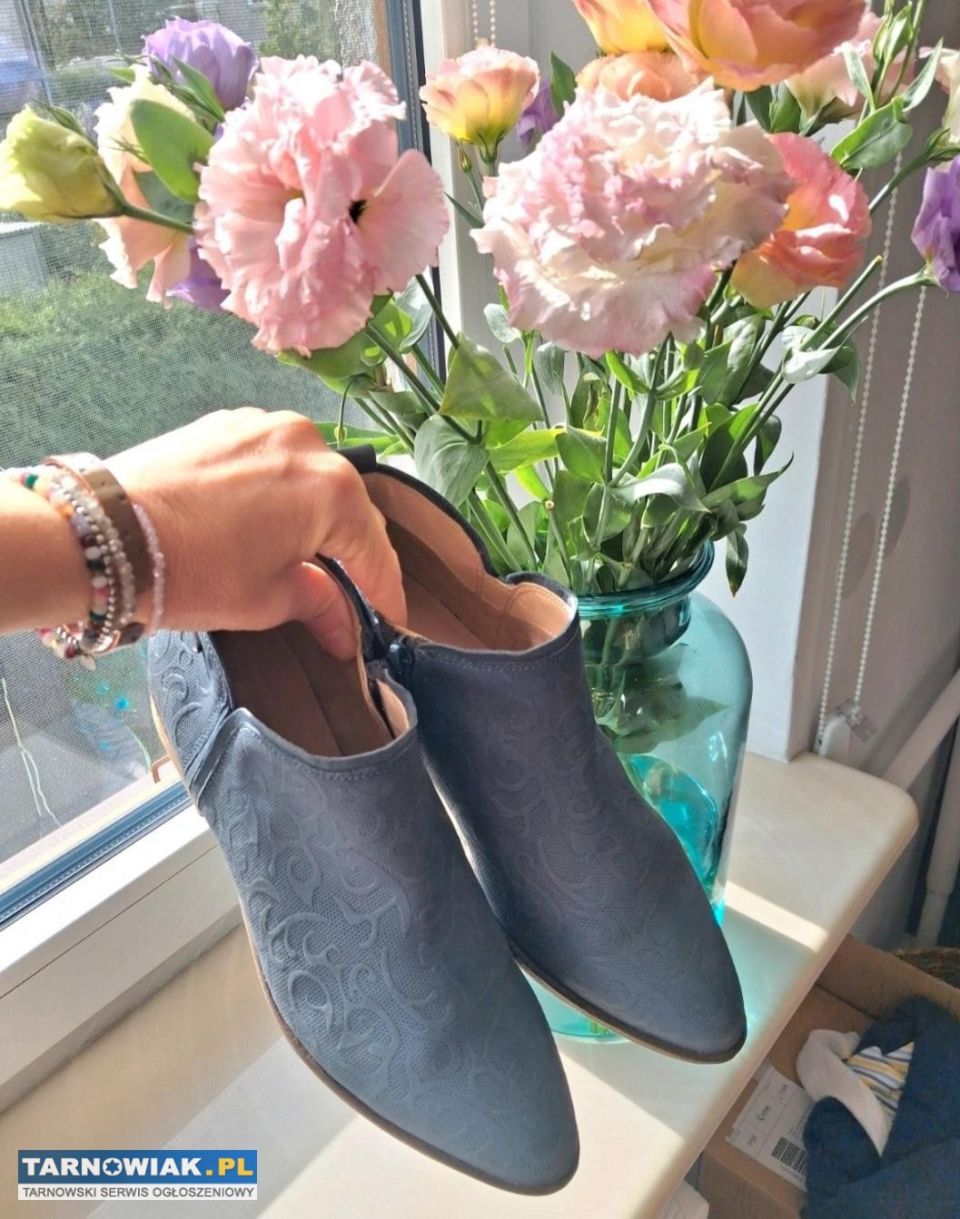 Sprzedam śliczne botki z naturalnej skóry. Długość wkładki 24,5cm. Podeszwa kauczukowa. Nie zniszczone, czyste w środku. Polecam!!!