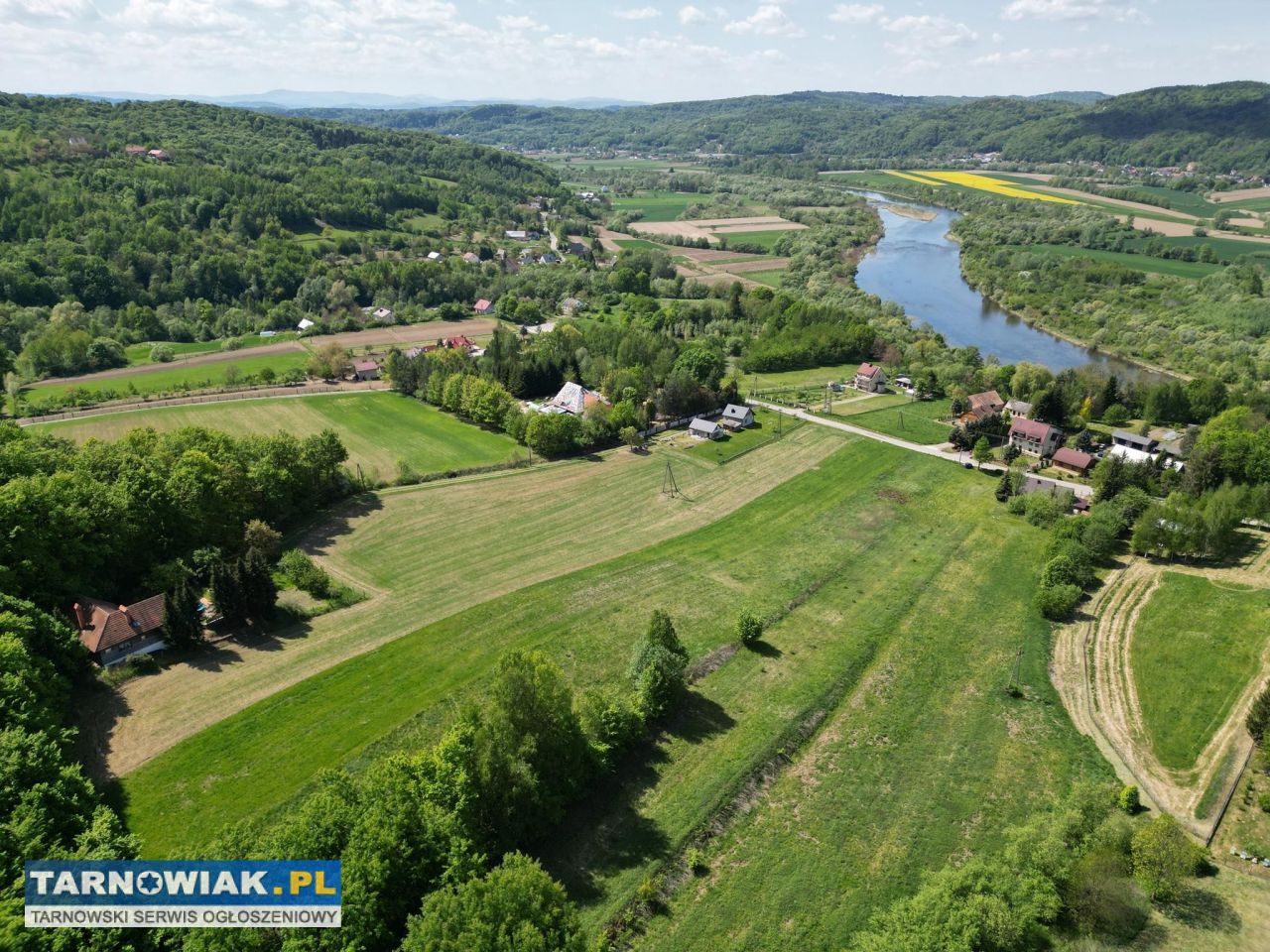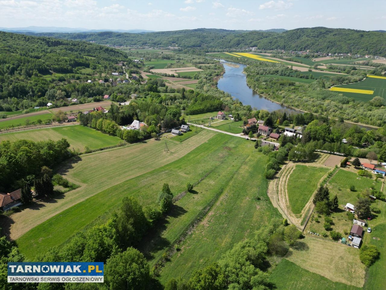 Działka w kształcie prostokąta o szerokości 20 m, nachylenie zachodnie w kierunku rzeki Dunajec. Dojazd droga asfaltową. Media: prad, gaz - na działce.