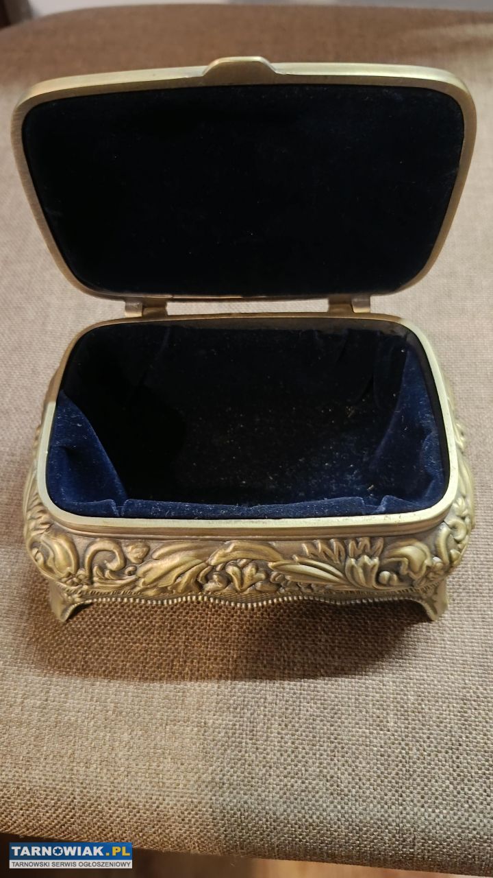 witam sprzedam piękną szkatułkę ciężką w kolorze starego złota na biżuterię lub złoto cena 180 zł odbiór tarnów spód jest blaszka tel 694265325..