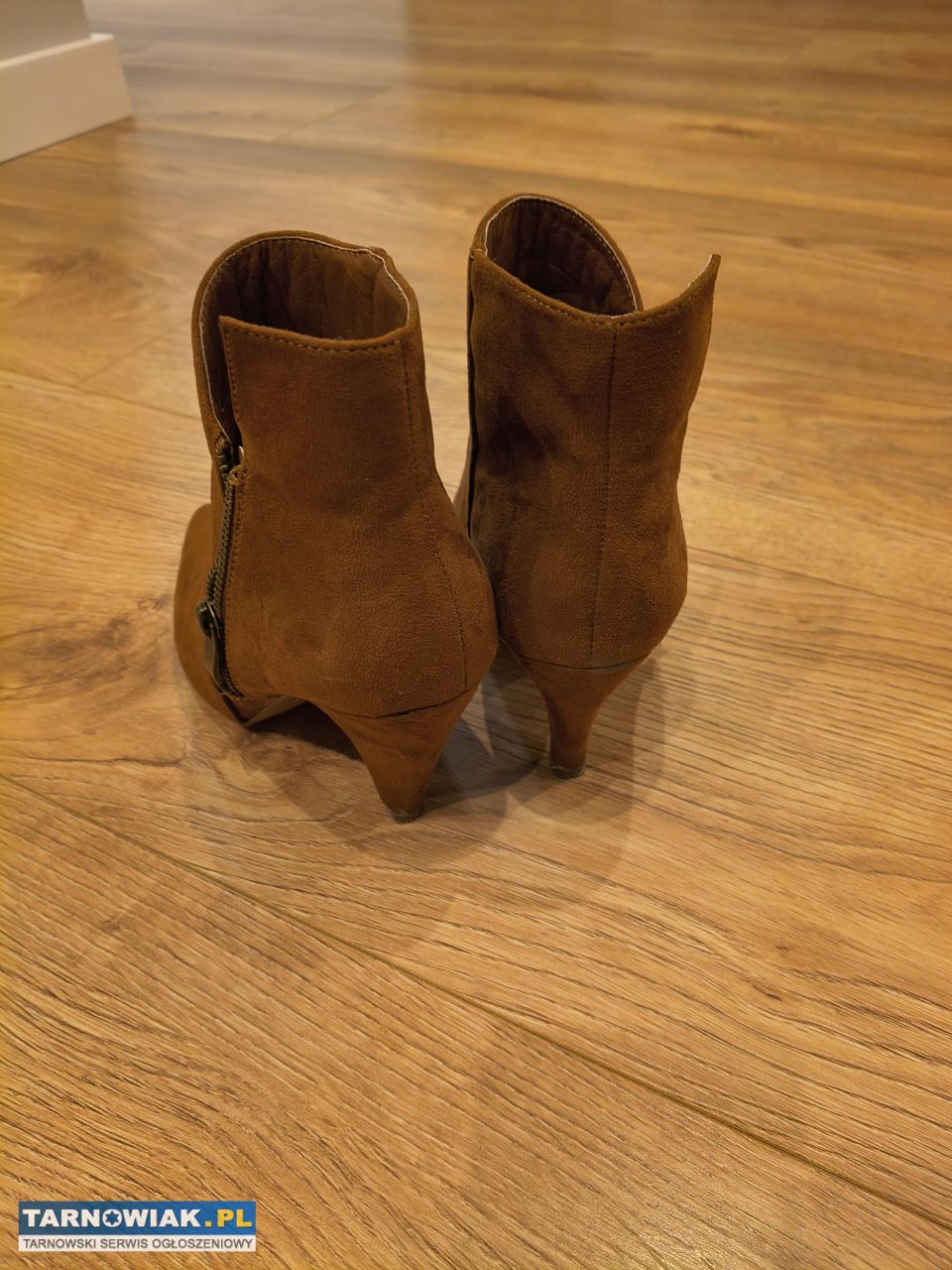 - 2. Brązowe zamszowe botki, wygodne, na niskim obcasie, rozm. 3 ...