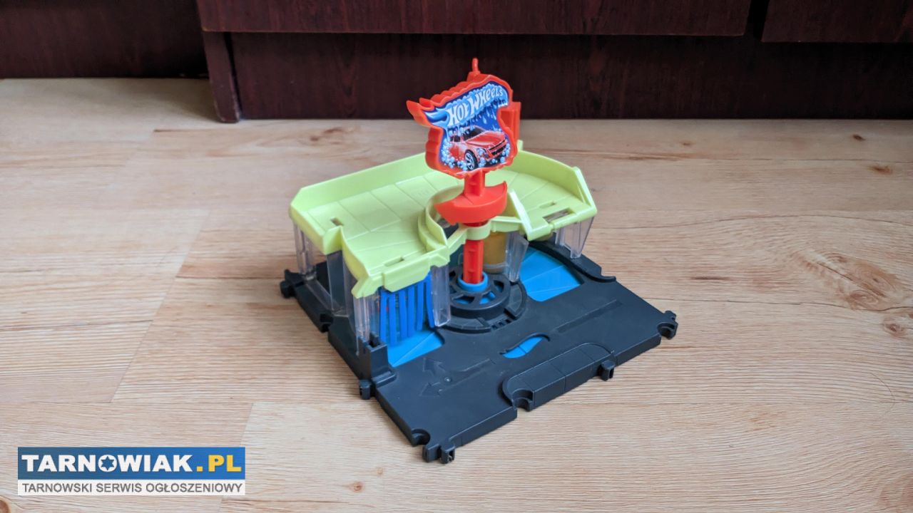 Mam do sprzedania zestaw Hot Wheels Myjnia Samochodowa. Sterowanie myjnią za pomocą korbki, co pozwala na transport pojazdu z początku na koniec myjni, a na dachu mały parking i dystrybutor paliwa. Brak szlabanu i rampy prowadzącej na dach.