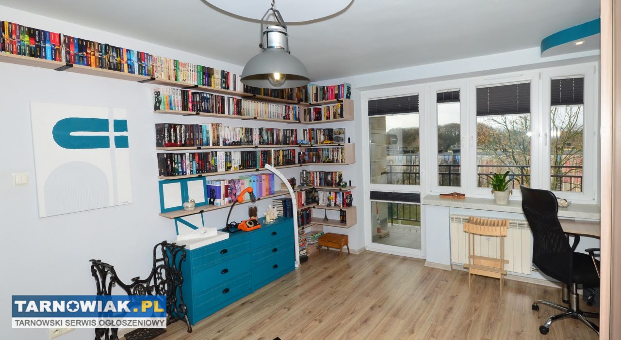 Powierzchnia 70 m2. Składa się z czterech pokoi, kuchni, łazienki, oddzielnego WC i przedpokoju. Leży na IV piętrze czteropiętrowego bloku. Lokal umeblowany i wyposażony we wszystkie potrzebne AGD. Atutem tego mieszkania jest doskonałe rozmieszczenie pomieszczeń co daje wrażenie ogromnej przestrzeni. Kuchnia w pełni wyposażona z wydzielonym aneksem jadalnym. Ogromny salon z wyjściem do sypialni i dwa mniejsze pokoje z czego jeden ma balkon. Łazienka z wanną i szklanym parawanem wyposażona w pralkę i suszarkę bębnową. Duży przedpokój.