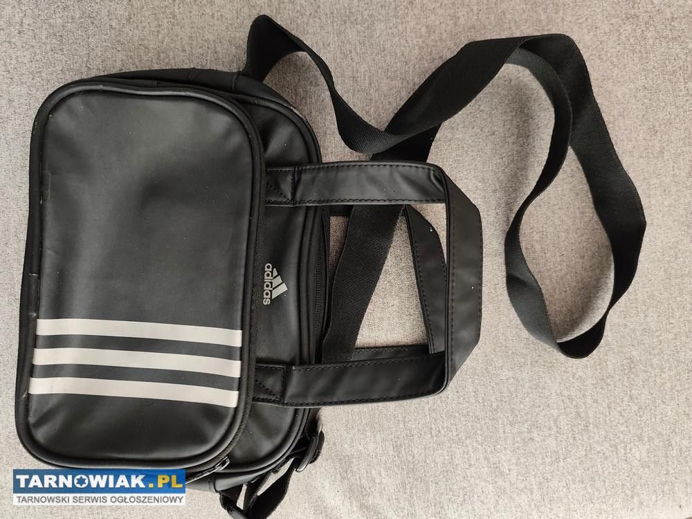 Sprzedam saszetkę męską do doszenia w ręce lub na ramieniu, jest koloru czarnego,firmy Adidas o rozmiarze szerokość 27cm, wysokość 18cm,grubość 8cm. Posiada 2 przegrody z kieszonkami zapinane na zamek. Jest troszkę używana ale w ładnym stanie wizualnym bez plam czy uszkodzeń. Jest możliwość obejrzenia w Tarnowie, zapraszam do zapoznania się z moimi pozostałymi ofertami.