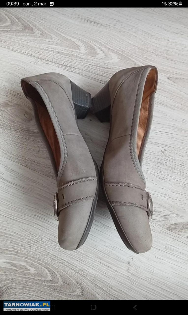 Ciemno beżowe wygodne czółenka ze sprzączką renomowanej firmy Gabor ze skórzaną wkładką na małym obcasie o wysokości 4cm ,zewnatrz obszyte gumką co pozwala na wygodne wkładanie i dopasowanie się do stopy,rozmiar 41 długość wkładki 26,5cm koszt nowych to ponad 300zl sprzedam za 55zl