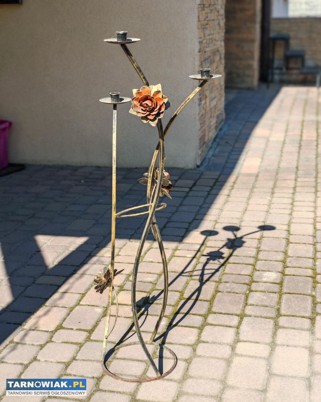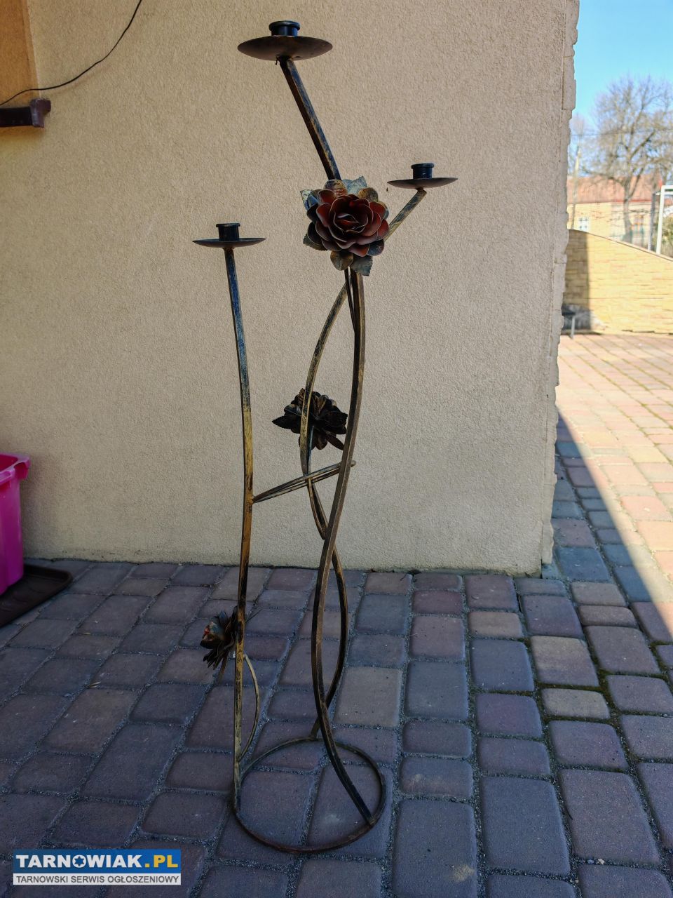 Stary świecznik, stalowy, kuty. Wymaga odświeżenia ale bez uszkodzeń w konstrukcji. Dość ciężki, wysokość 100cm.