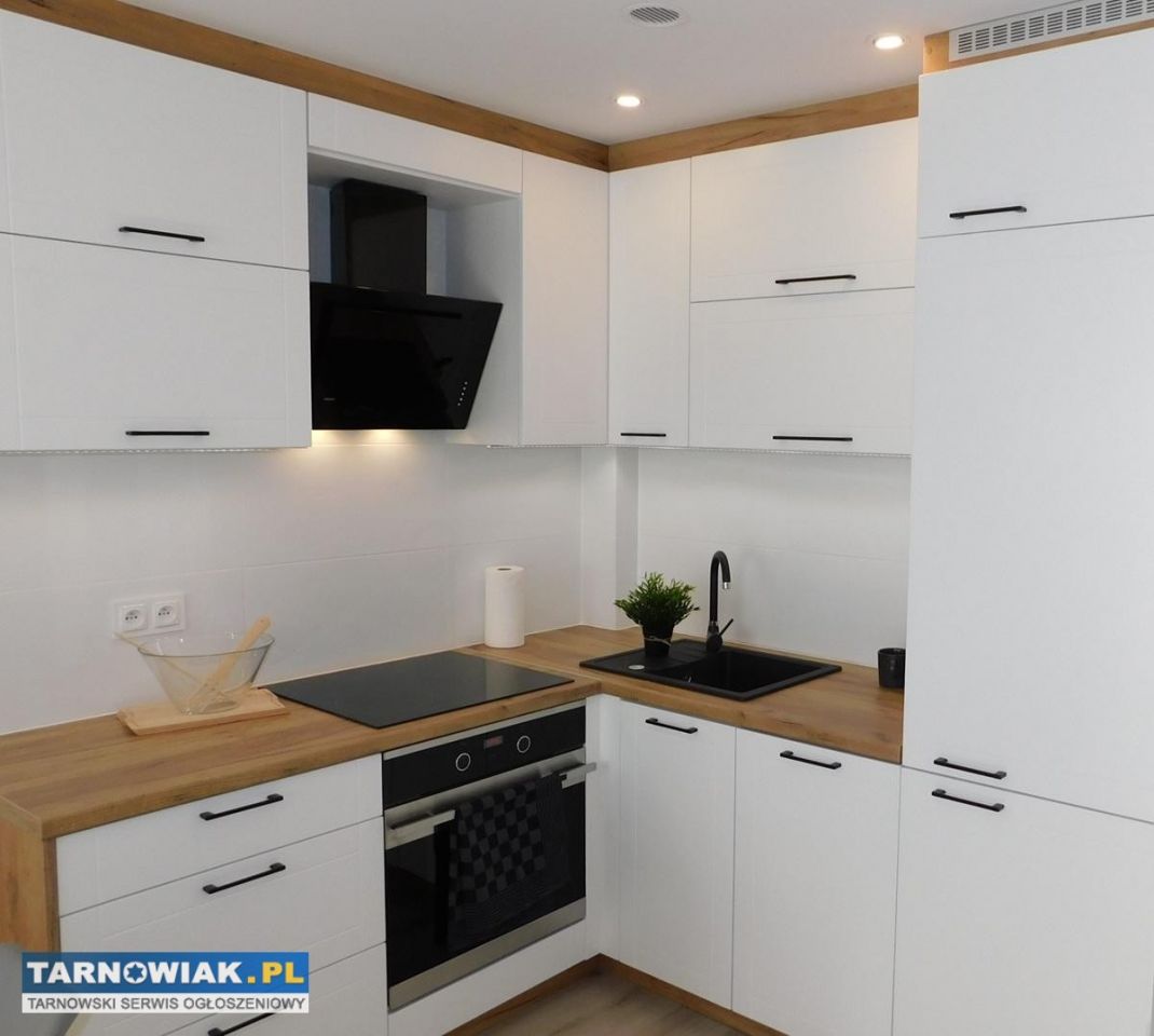 kuchnia : meble kuchenne w zabudowie, płyta indukcyjna , lodówka, piekarnik elektryczny
