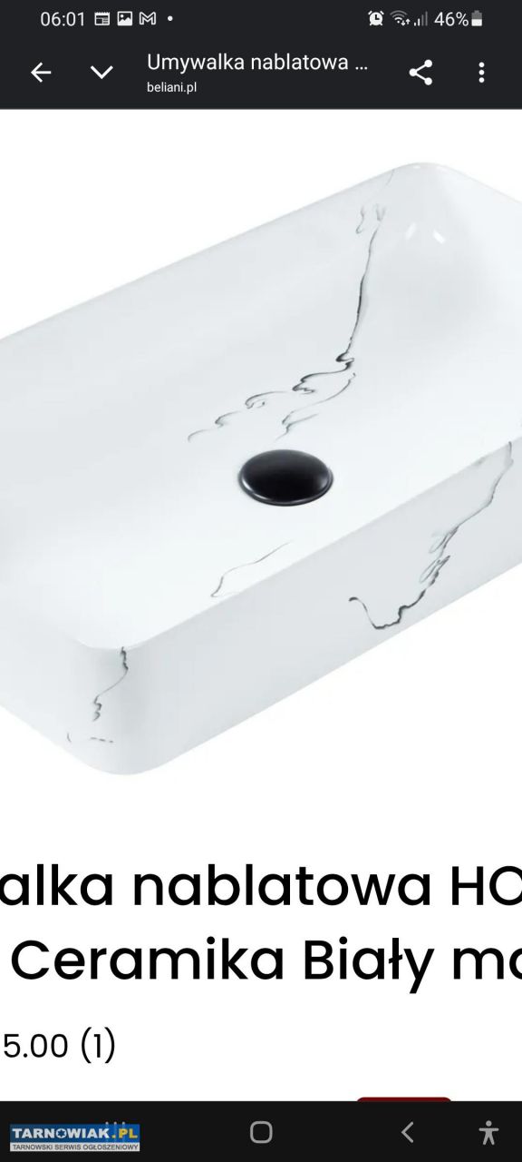 Sprzedam nowa zapakowana nie otwierana umywalke nadblatowa biały marmurk z czarnym nowym klik klakiem o rozmiarach 61,35,11 280 do negocjacji7