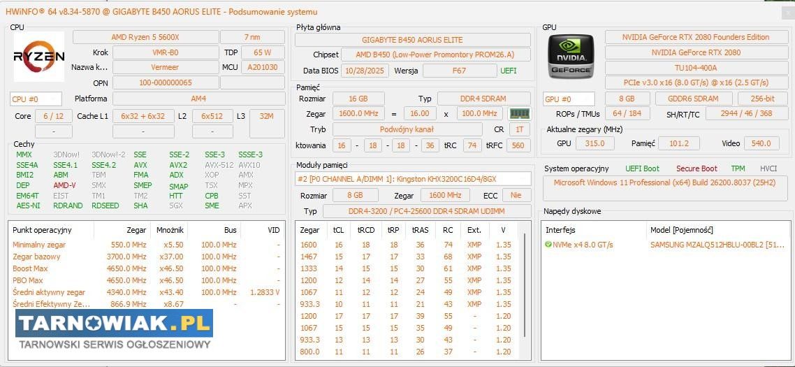 Komputer ryzen 5600x | rtx 2080 | 512gb | 16gb ram #2419484