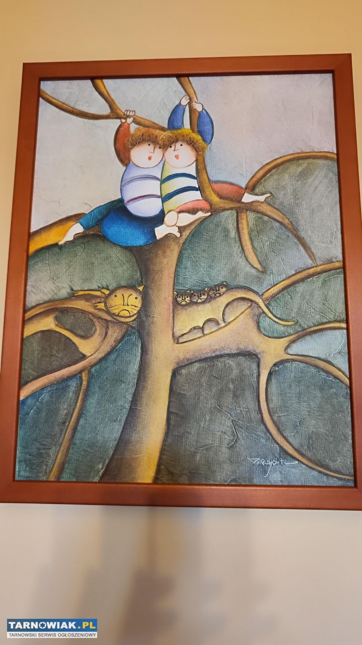 sprzedam bardzo tanio, kolorowy, wprowadzający radość oryginalny obraz dzieci na drzewie, który ożywi każde wnętrze
