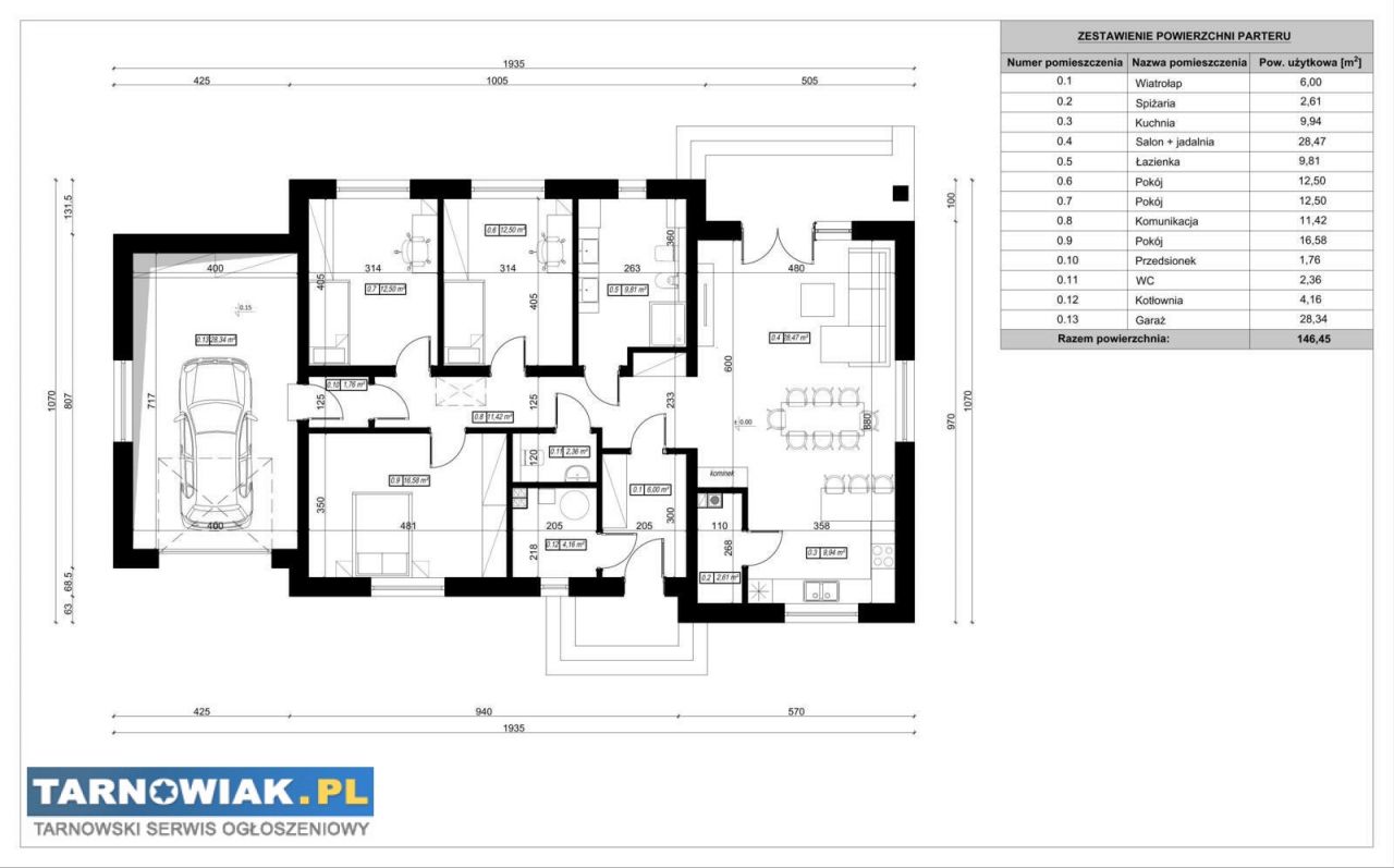 Powierzchnia użytkowa: 146,5 m², działka 7,4 ar, ogrodzona