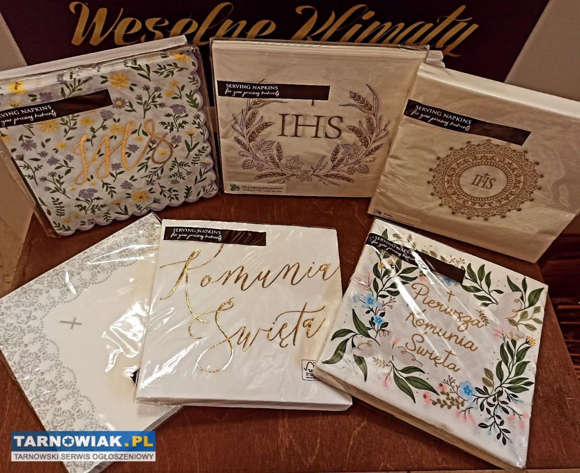 W ofercie mamy: zaproszenia, podziękowania dla gości, pudełka i torebki na ciasta, figurki i toppery na torty, serwetki, a także wiele elementów dekoracyjnych takich jak: kule bibułowe, pompony, girlandy, szyfony, tiule, tasiemki satynowe oraz balony z helem.