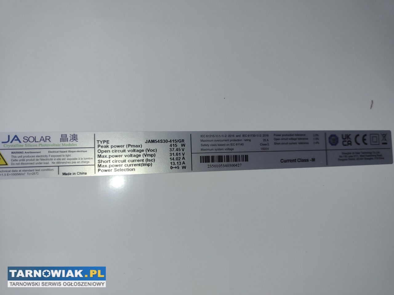 Sprzedam nowy, nigdy nie używany moduł (panel) fotowoltaiczny JA SOLAR 415 W - 5 sztuk