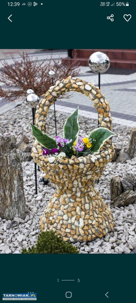 Witam na sprzedaż oferuję donice betonowe obkładane kamieniem naturalnym w różnych kolorach ( żółty , kora, zielony , czerwony , szary , kremowy ) Donice wykonane własnoręcznie czyste rzemiosło . Wysokość 90 cm (od samego spodu po szczyt ucha ) Donice są impregnowane lakierem na zewnątrz , śmiało można je zostawić na zimę nie ma się czego bać . Wszystko jest mrozoodporne . Donice maja odpływ na wodę . Możliwy transport pod sam dom ( przed wcześniejszym uzgodnieniem) Cena nie podlega negocjacji . Nie wysyłam . Zapraszam do kontaktu =D