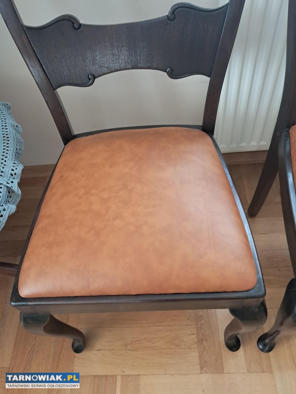 Posiadam do sprzedania komplet czterech krzeseł drewnianych pokazanych na zdjęciach w kolorze palisander z siedzisko sprężynowe ekoskóra świeżo po wymianie .Zapraszam