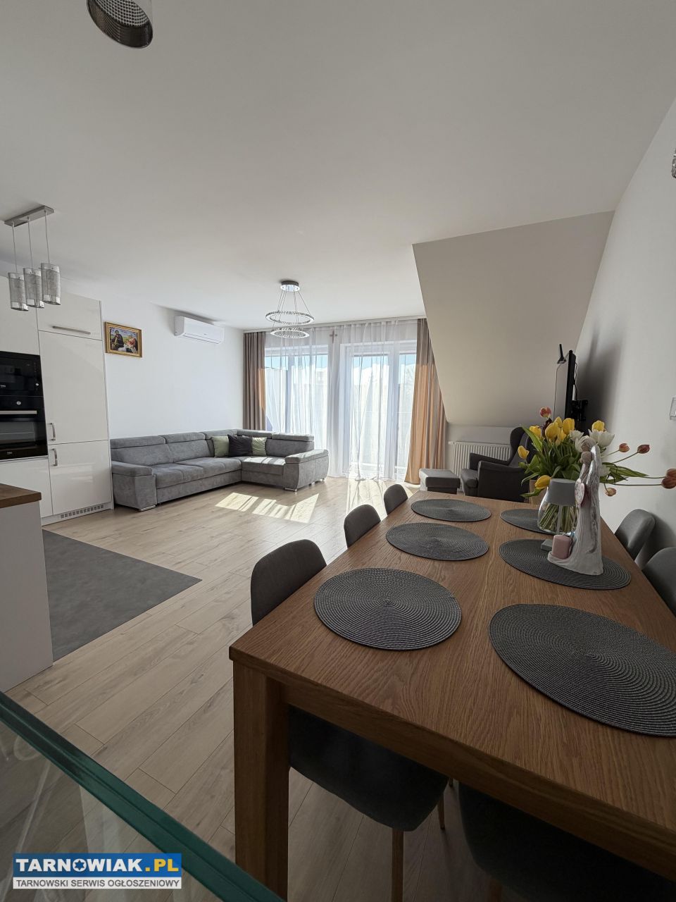 Mieszkanie jest umeblowane i wykończone w wysokim standardzie, co pozwala na zamieszkanie od zaraz.