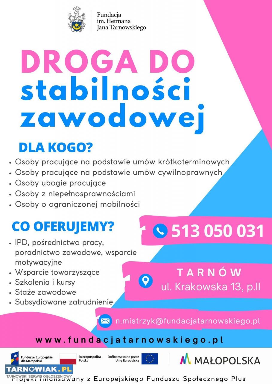 Zapraszamy po więcej szczegółów: www.fundacjatarnowskiego.pl/droga-do-stabilnosci-zawodowej/