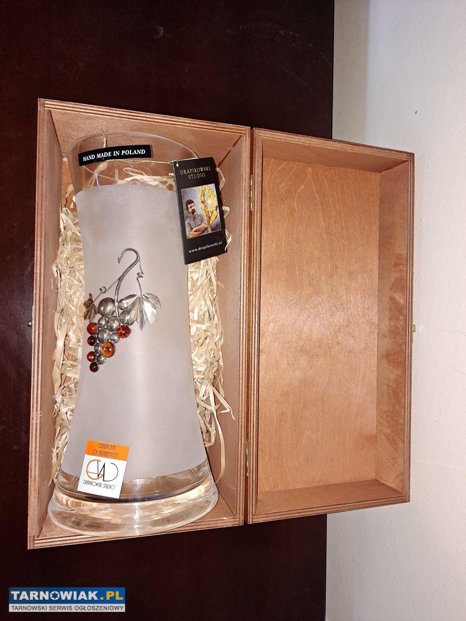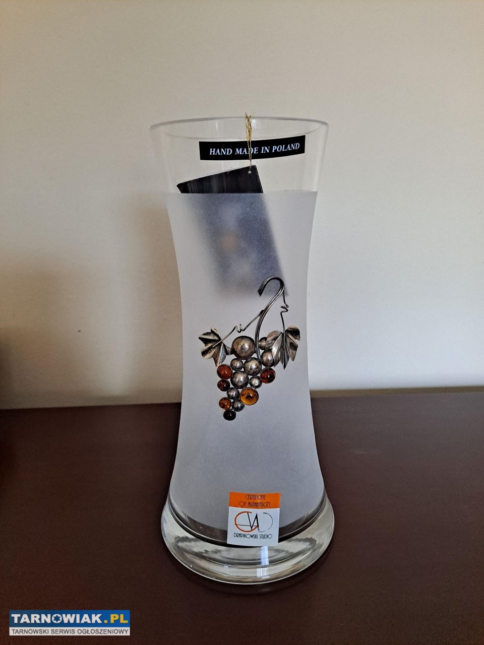 Sprzedam oryginalny wazon artystyczny, wykonany ręcznie w prestiżowej pracowni polskiej pracowni "Drapikowski Studio", znanej i cenionej na całym świecie z realizacji sakralnych ze srebra i bursztynu, w tym elementów dla Jasnej Góry oraz projektów międzynarodowych. Ich prace łączą: