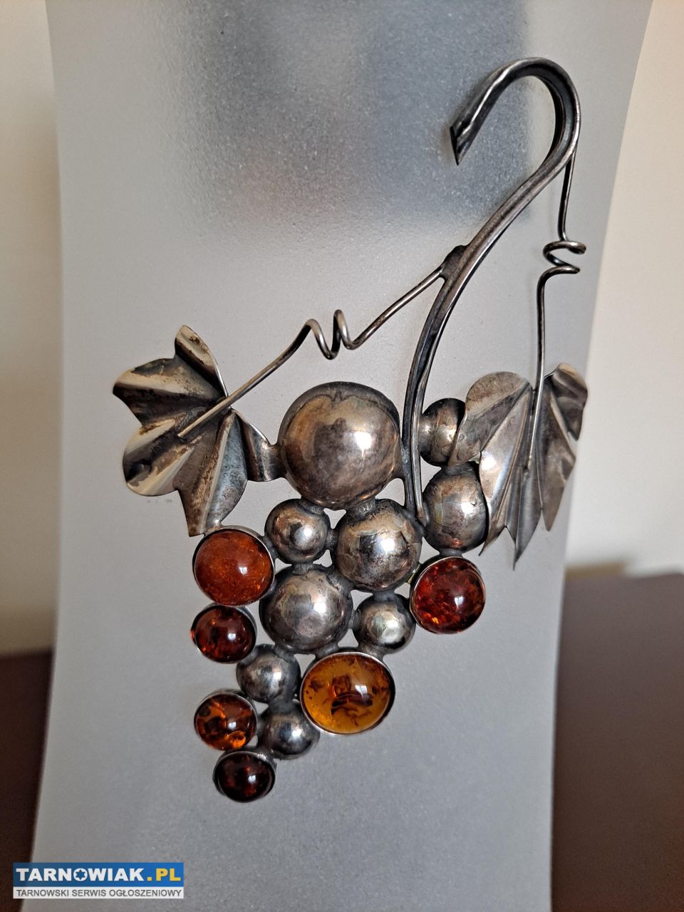 + dekoracja: metalowa (srebro?) winorośl z elementami bursztynowymi;