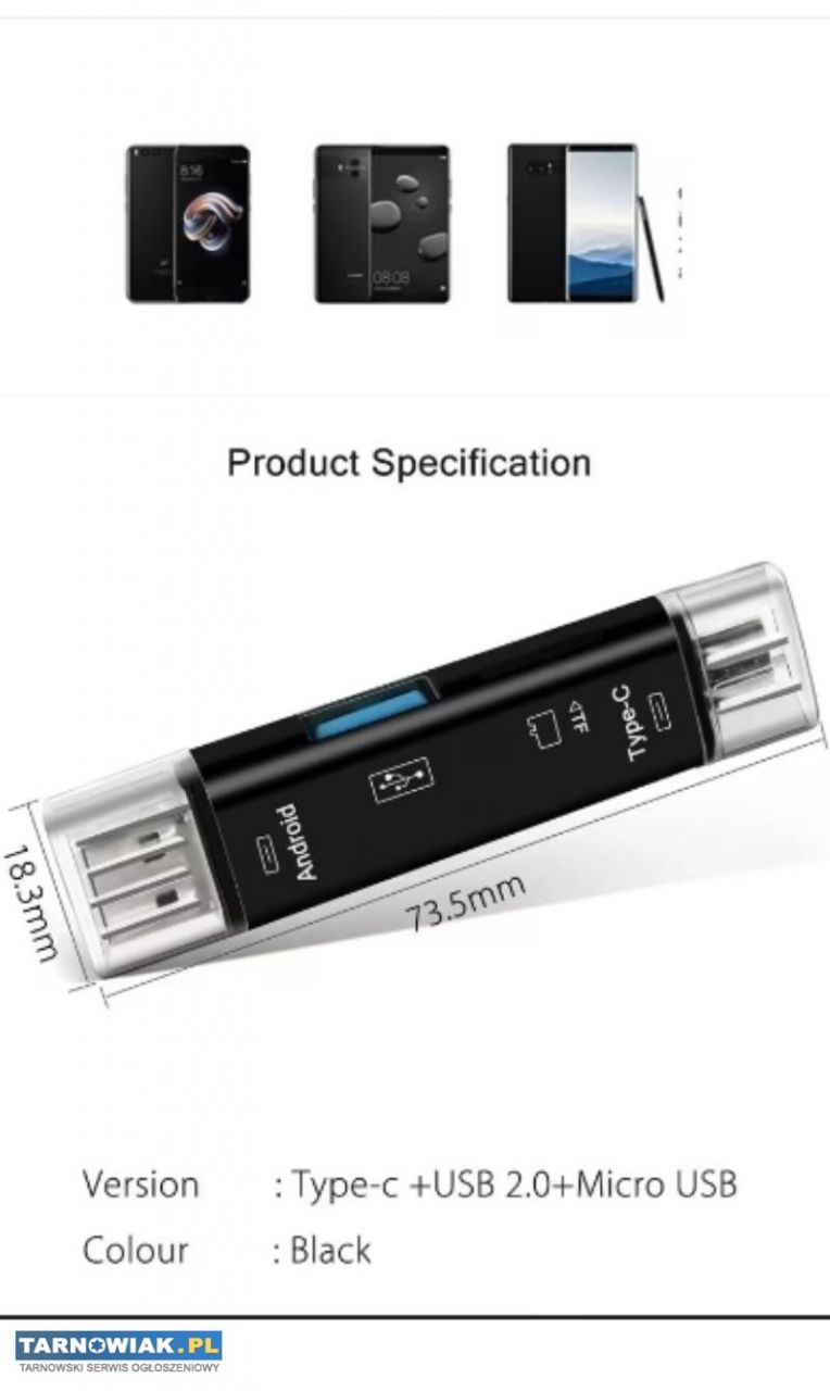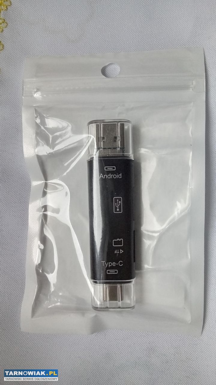 Nowy 5w1 Wielofunkcyjny czytnik kart pamieci USB 2.0 typC/Usb/Mikro Usb/TF/SD Adaoter OTG dla urządzeń mobilnych tj.komórka ,laptop, tablet itp. Długość 73,5mm szerokość 18,3mm za 16zl