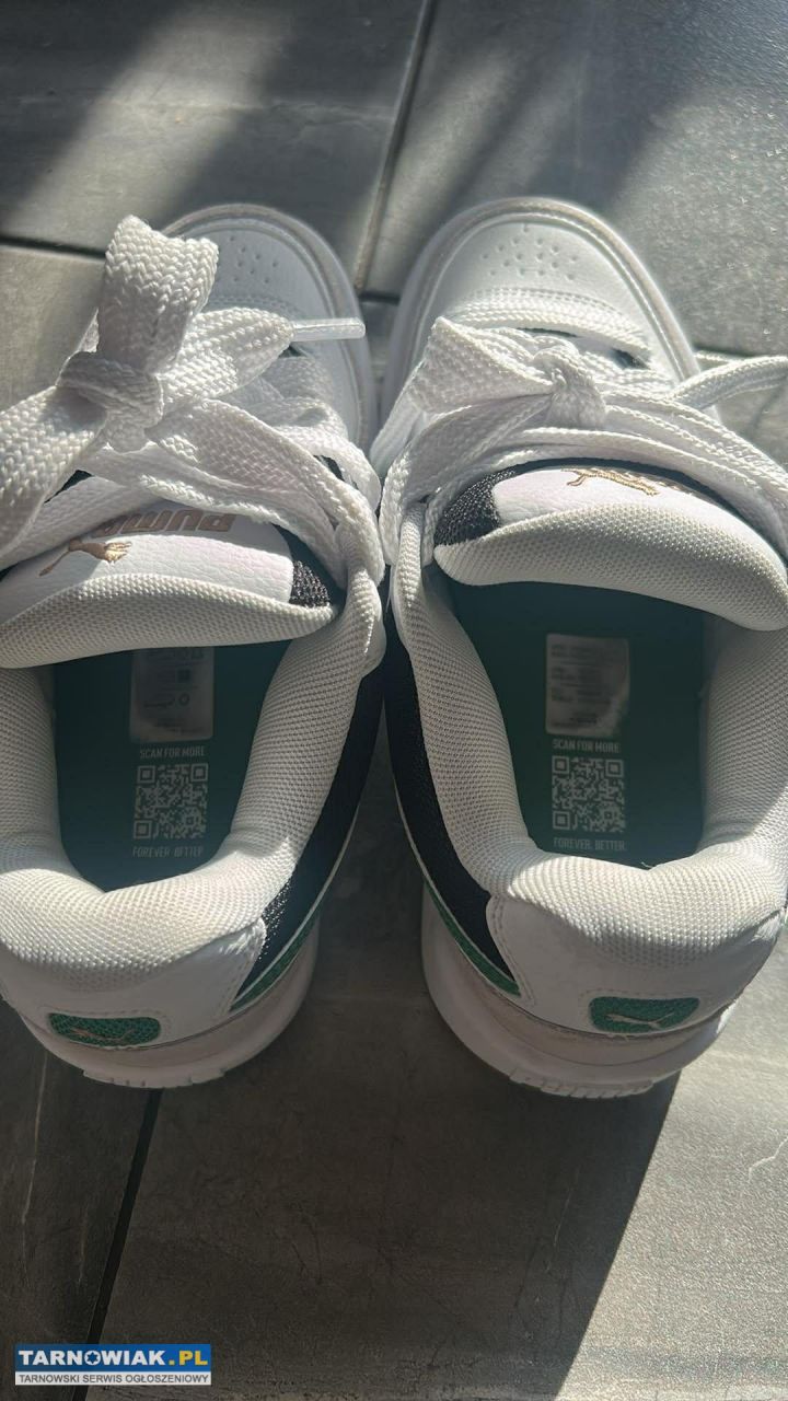 Witam sprzedam nowe damskie buty puma white-green-puma Gold rozmiar 37,5. Buty założone raz (widać w środku starcie metki), ale oprócz tego brak wad. Czyste, wygodne polecam. 150zł
