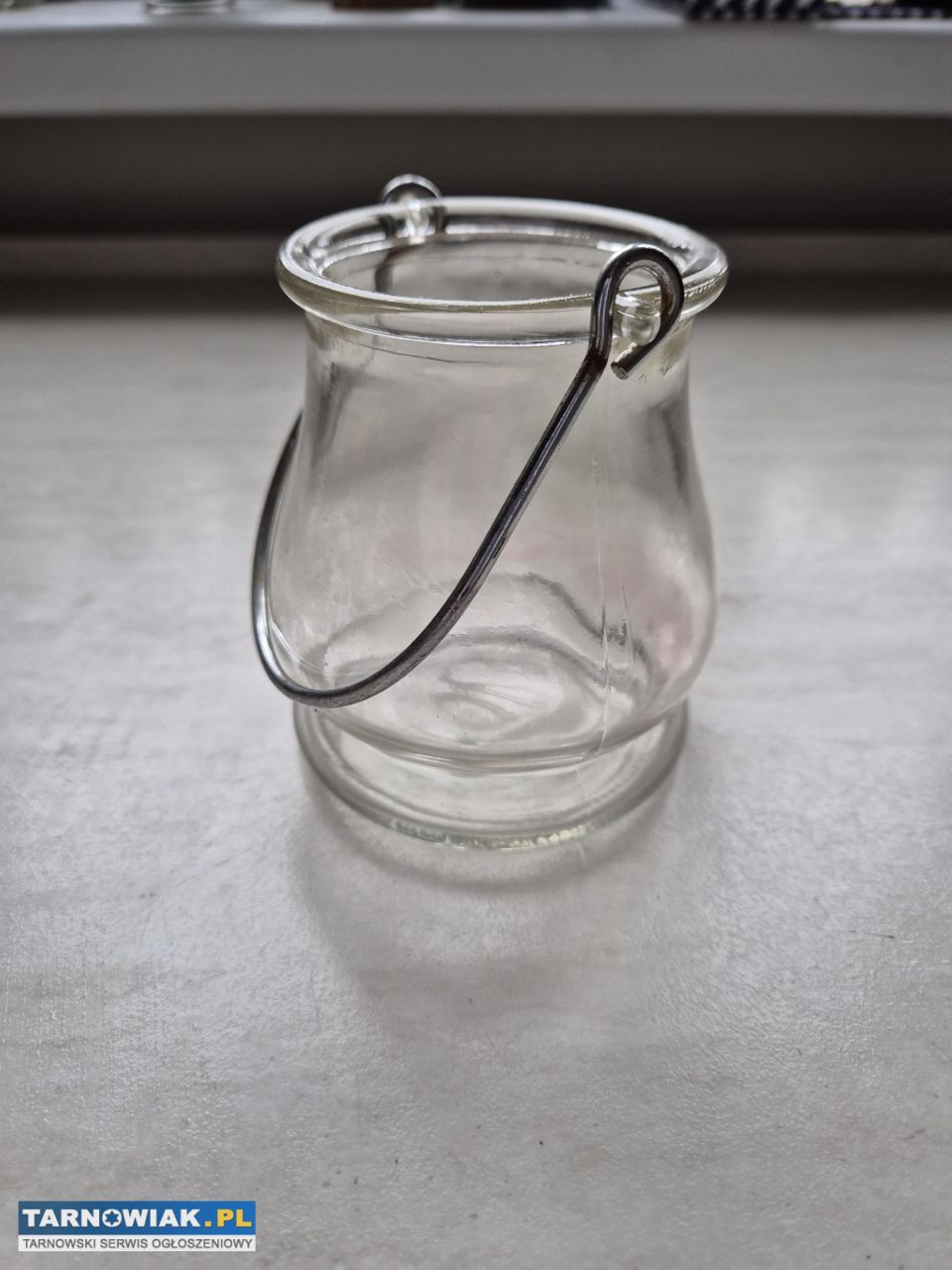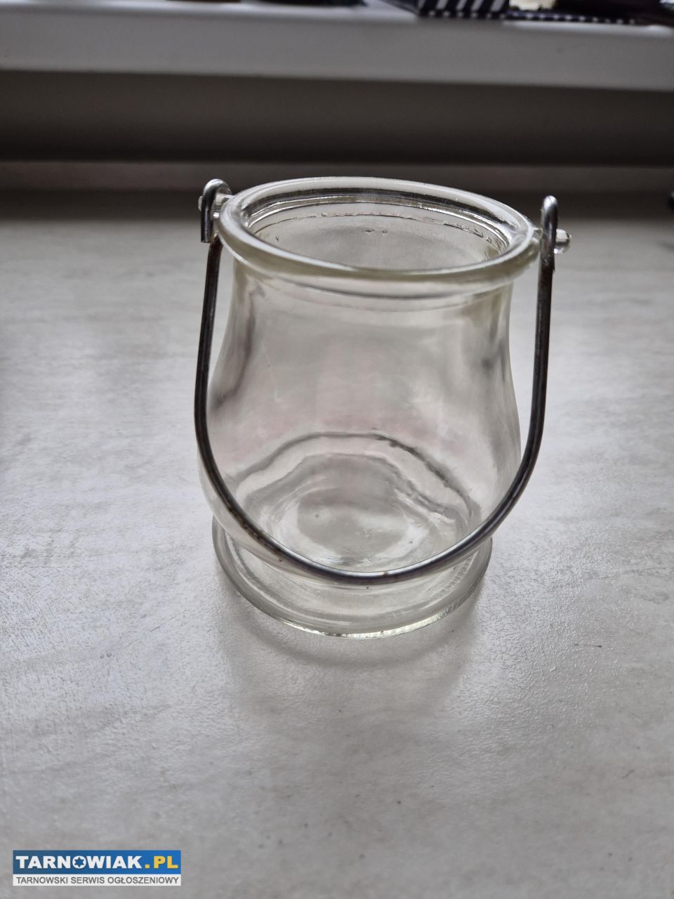 Szklany lampion, świecznik, latarnia z metalową rą #2429966