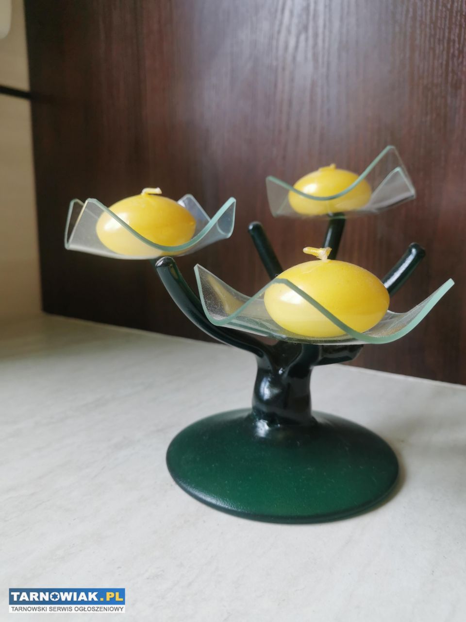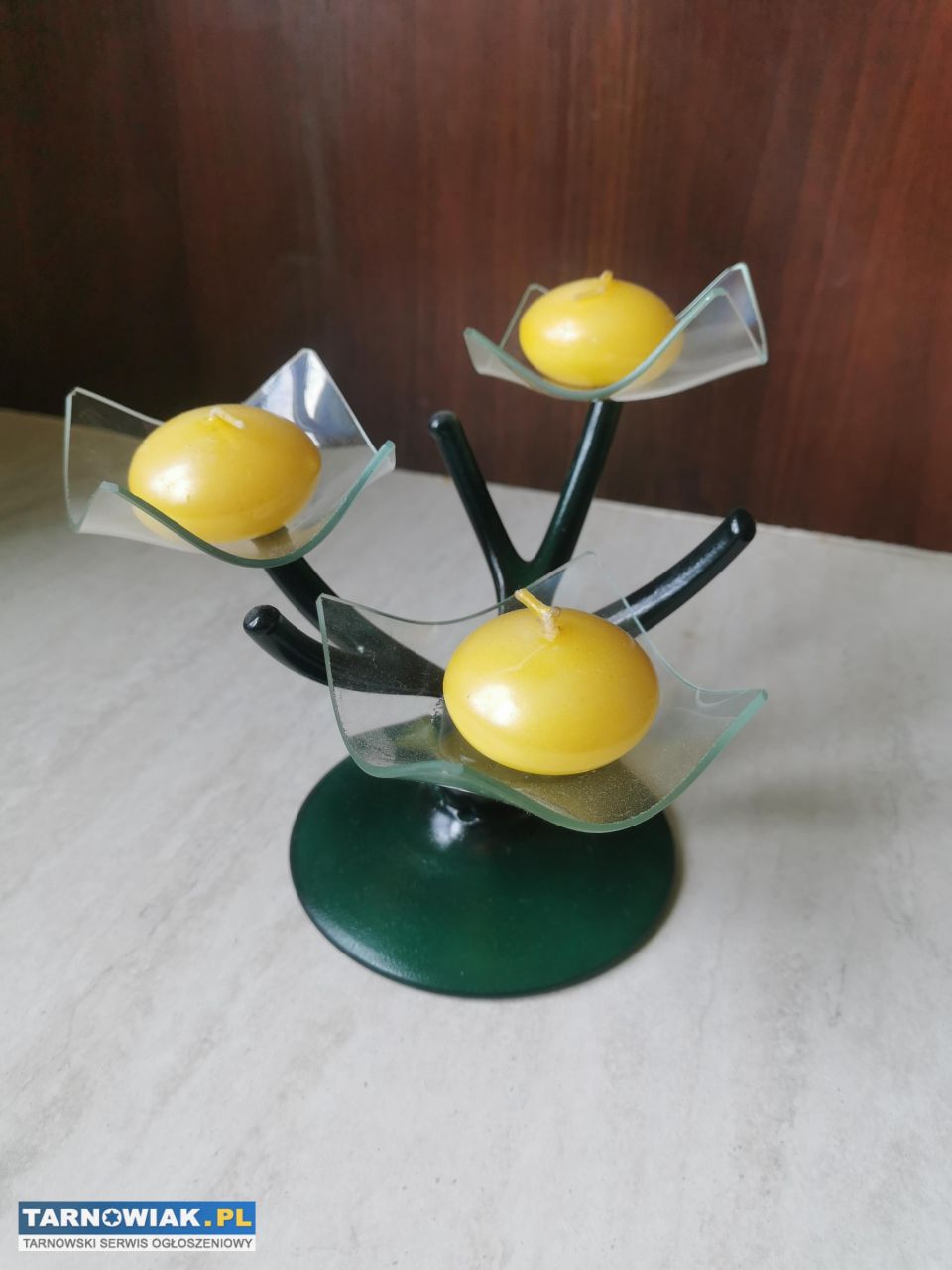 Świecznik szklany , zielony, na 3 świeczki wys. 15 #2430326