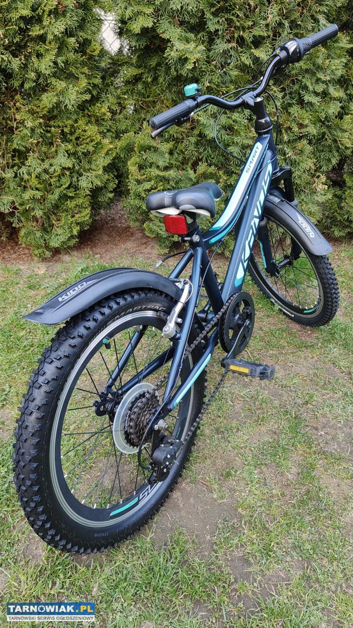 Sprzedam widoczny na zdjęciach rower Kands Smart na kołach 20 cali. Rama w rozmiarze 11 cali, błotniki, dzwonek, siodełko bez dziur, przerzutki Shimano 1x6, sprawny technicznie. Z przodu nowa opona, z tyłu jak nowa. Bdb stan, gotowy do jazdy. Kolor morski matowy. Odbiór wyłącznie osobisty Lisia Góra ul Długa 39A
