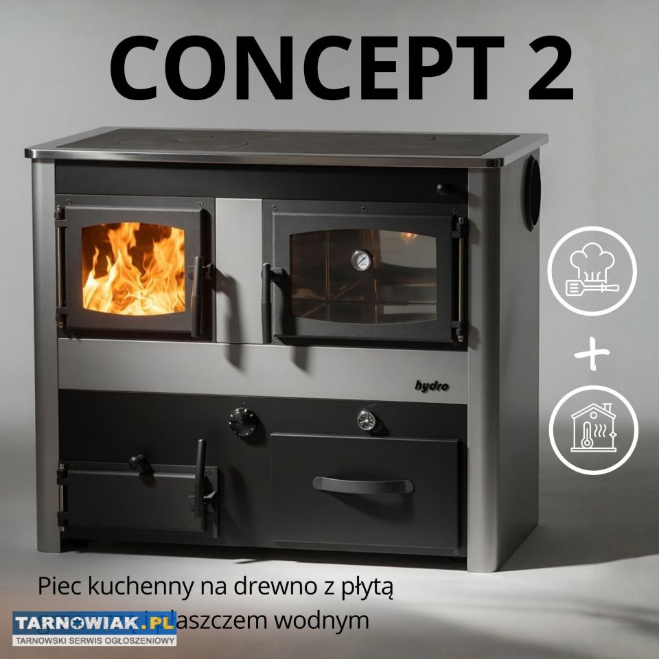 Piec kuchenny Concept 2 to zaawansowane urządzenie grzewcze, które łączy funkcję klasycznego kominka, kotła centralnego ogrzewania oraz tradycyjnej kuchni węglowej. Jest to idealne rozwiązanie dla osób poszukujących niezależności energetycznej, wydajności oraz eleganckiego designu.