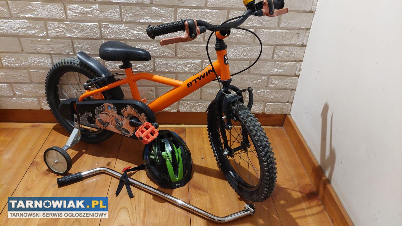 Sprzedam zadbany rowerek dla dziecka Btwin koła 16cali z kółkami bocznymi, kijkiem, kaskiem, podnózką za 310zł