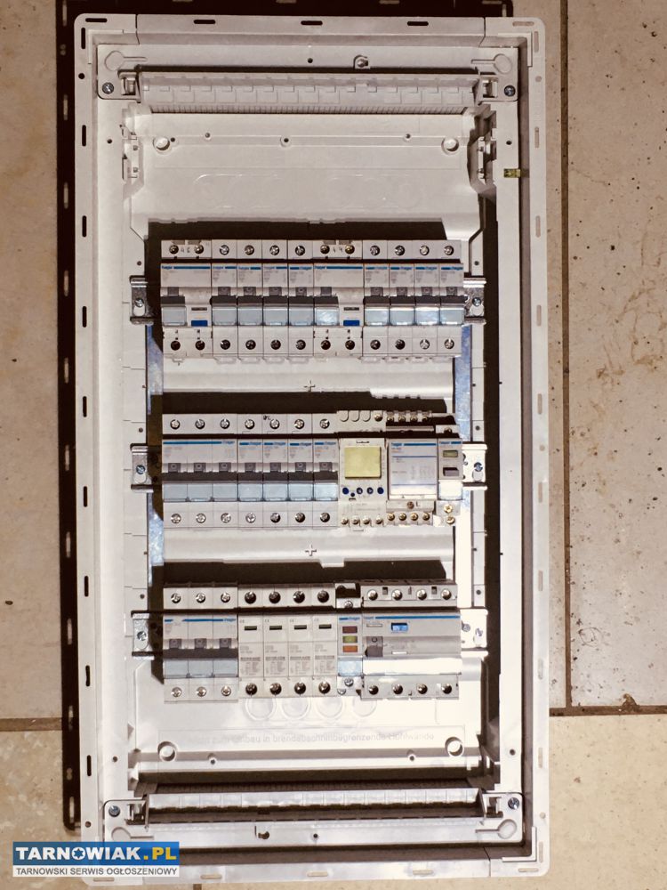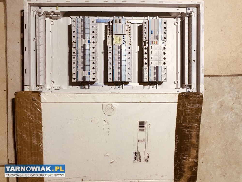 Witam. Sprzedam niesznurowaną nową rozdzielnię elektryczną firmy Hager która gwarantuje doskonałą jakość i dążenie do perfekcji. Rozdzielnia jest nowa a znajdujący się w niej osprzęt ją używane ale wizualnie jak i technicznie w bardzo dobrym stanie, pomimo że osprzęt jest używany , to wszystko powinno być sprawne i działać prawidłowo, lecz nie daję gwarancji ponieważ jest to towar z demontażu, renomowanej firmy Hager. Idealna do rozbudowy, albo zabudowy do nowego domu , jako system BEZPIECZNY DOM ponieważ dla zabezpieczenia sprzętu AGD i RTV posiada zabezpieczenia przeciw wyładowaniom atmosferycznym a dla bezpieczeństwa domowników zabezpieczenia przeciwporażeniowe , Dlatego skrzynia wyposażona jest w wyłącznik główny, ochronnik ogranicznik przepięć, wyłącznik różnicowy 3-fazowy i jedna różnicówka 1-fazowa i wyłącznik nadprądowy 3-fazowe oraz wyłączniki nadprądowe 1-fazowe,kontrolki faz, zegar sterujący i stycznik trófazowy, dokładnie to co widać na zamieszczonych zdjęciach.