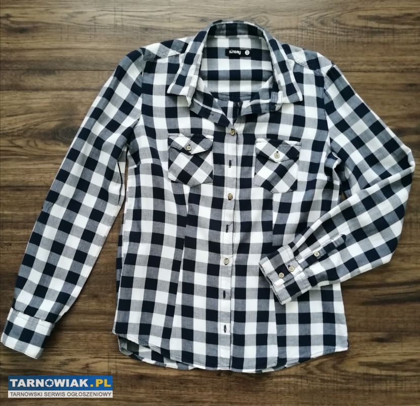 Sprzedam koszulę w niebiesko-białą kratkę. Rozmiar S. Cena 20 zł. W przypadku zakupu większej ilość rzeczy możliwe upusty.