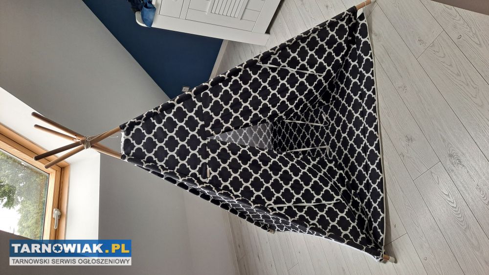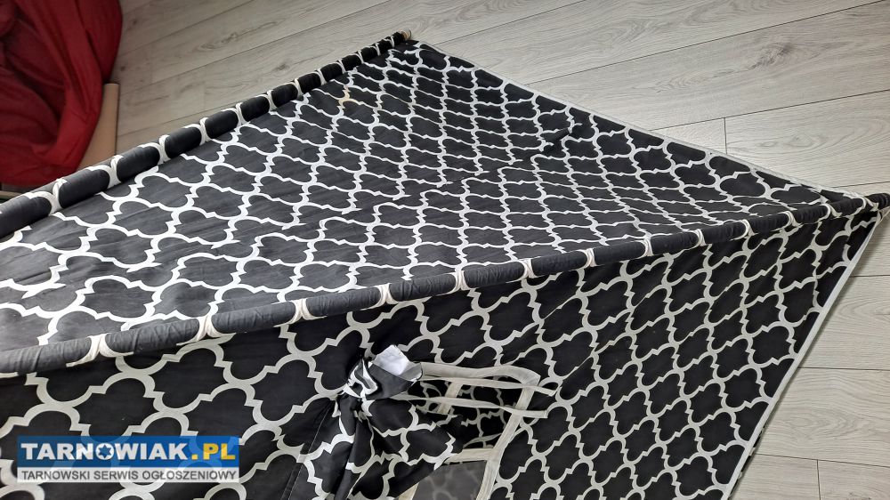 Namiot - szerokość podstawy ok 120cm x 120cm Wysokość całkowita ok 150cm, wewnątrz 120cm z matą 120x120 cm