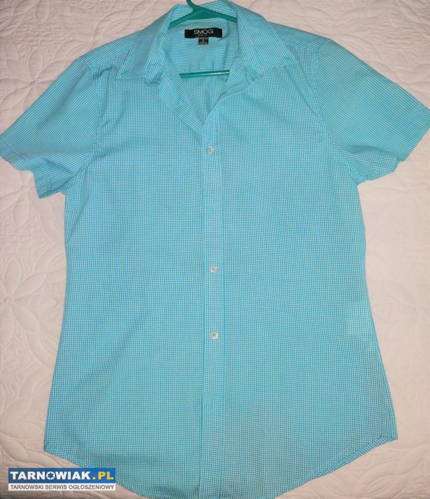 Sprzedam koszulę z krótkim rękawem w biało-miętową kratkę. Rozmiar S. Szerokość pod pachami ok. 48-49 cm. Cena 10 z. W przypadku zakupu większej ilości rzeczy możliwe upusty.