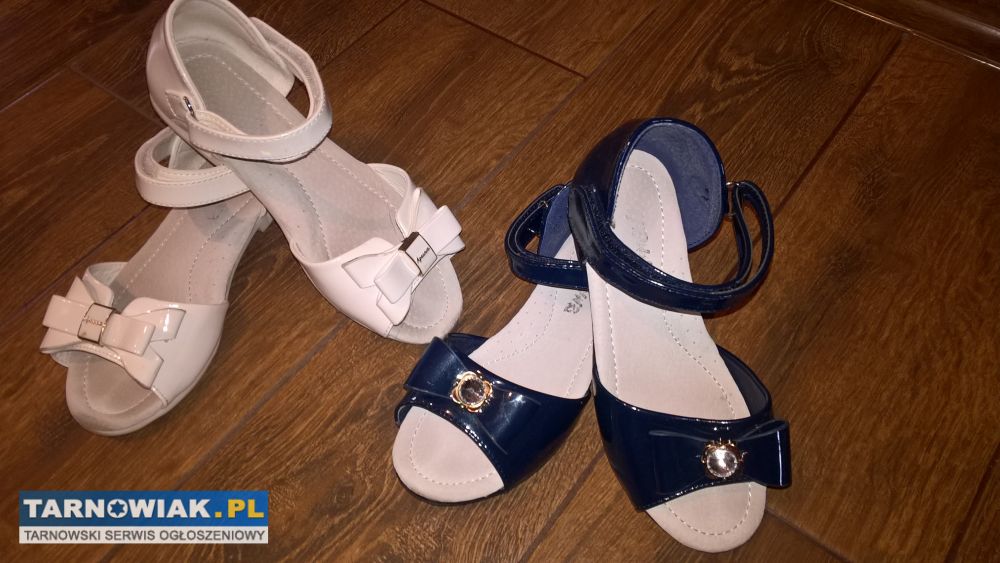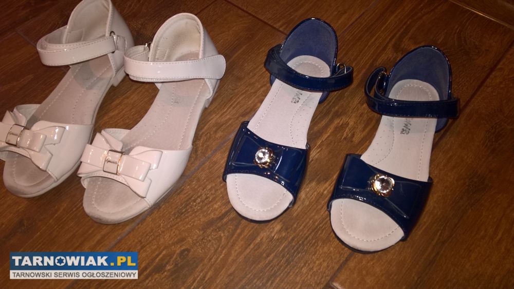 Sprzedam sandałki granatowe rozm 30 długość wkładki 18,5 cm , białe roz 32 długość wkładki 20 cm stan bardzo dobry cena 25 zł za parę